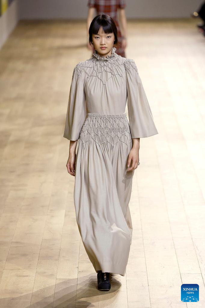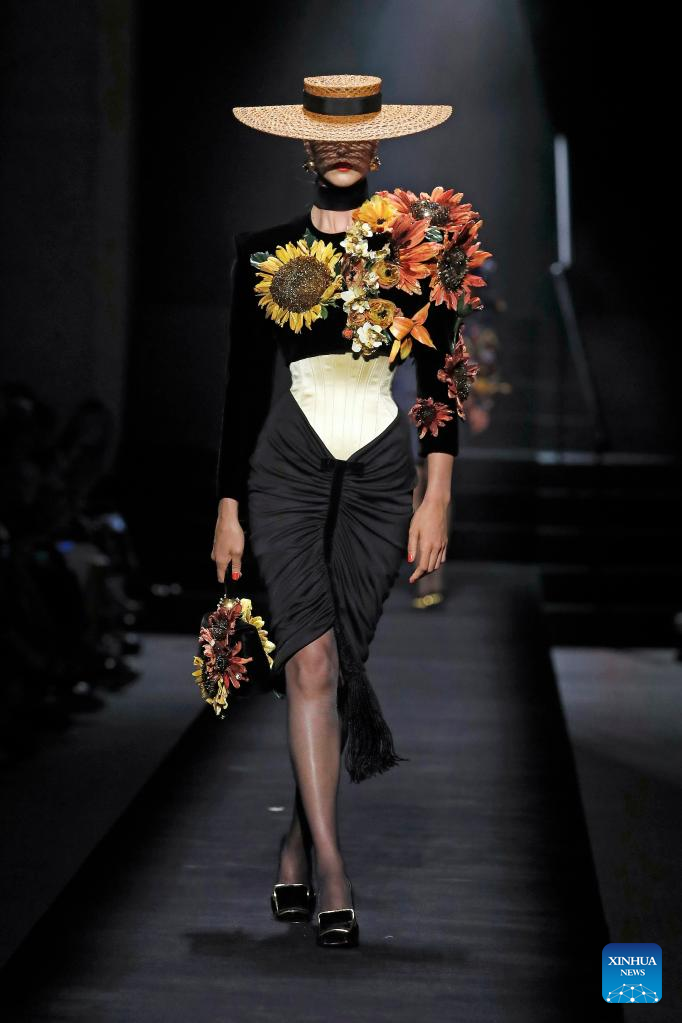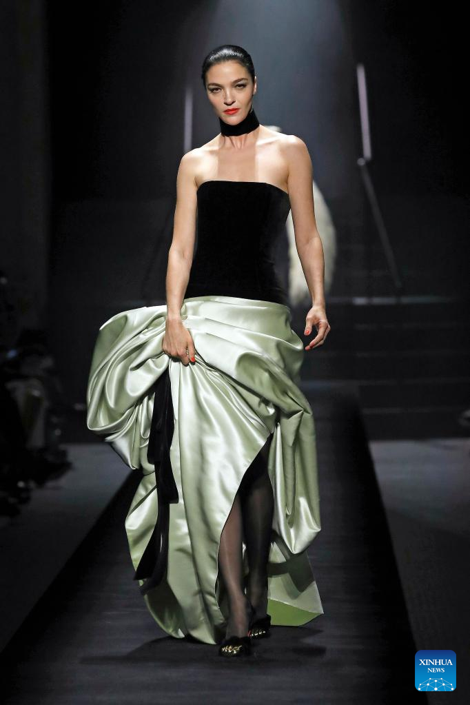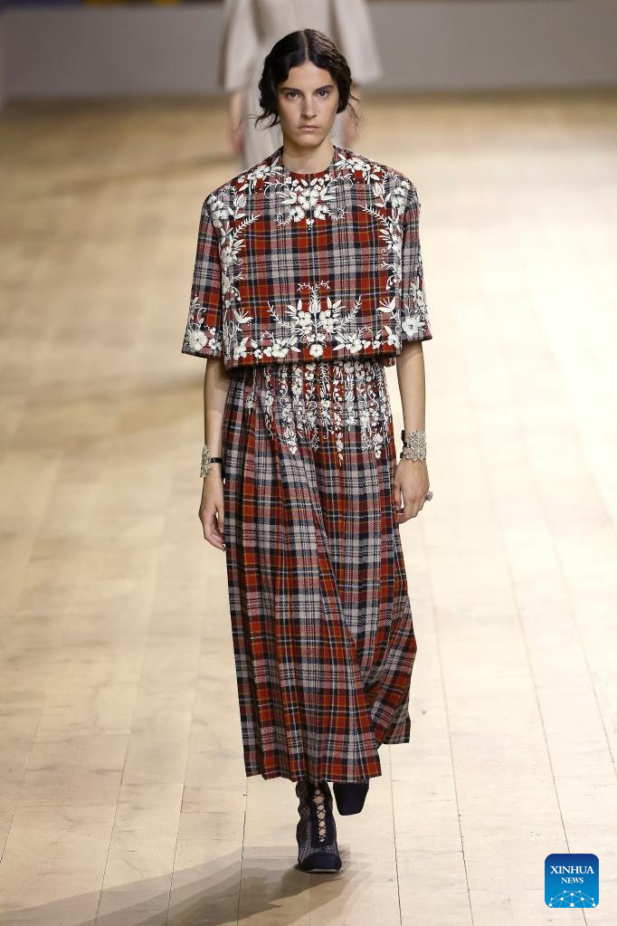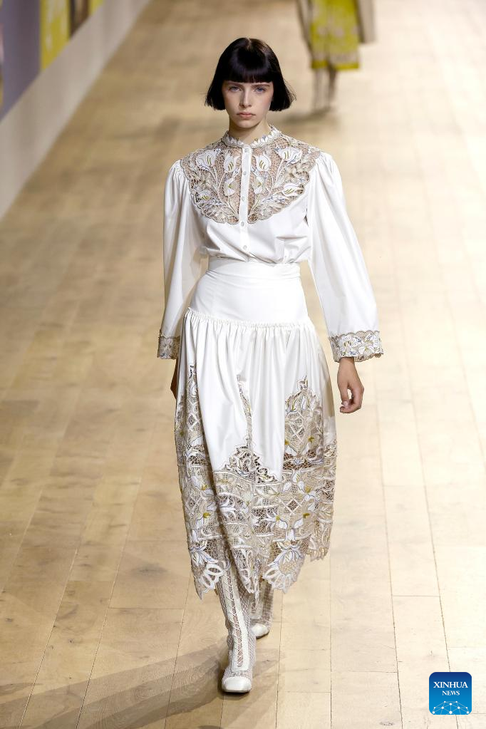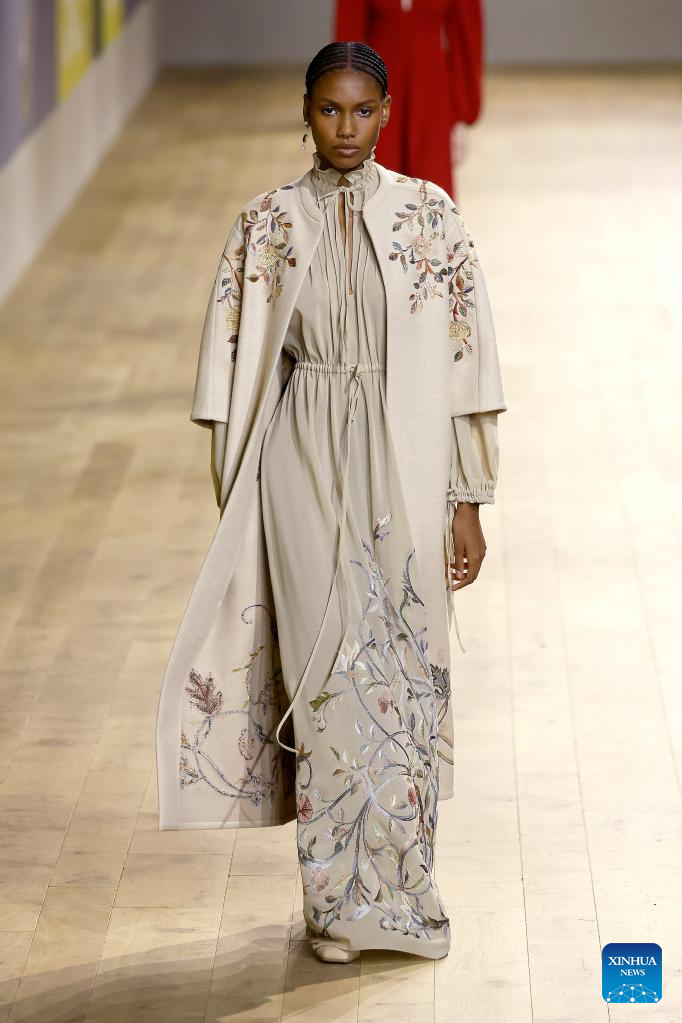 A model presents a creation from the Fall/Winter 2022-2023 Haute Couture collection of Christian Dior during the Paris Fashion Week in Paris, France, on July 4, 2022. (Photo by Piero Biasion/Xinhua)