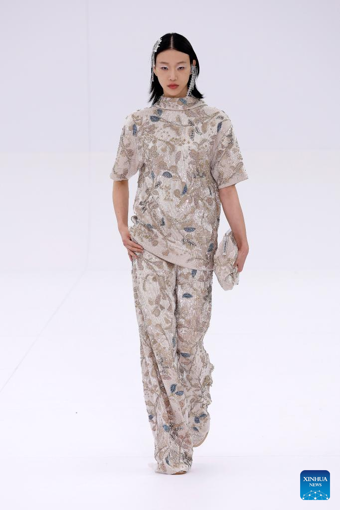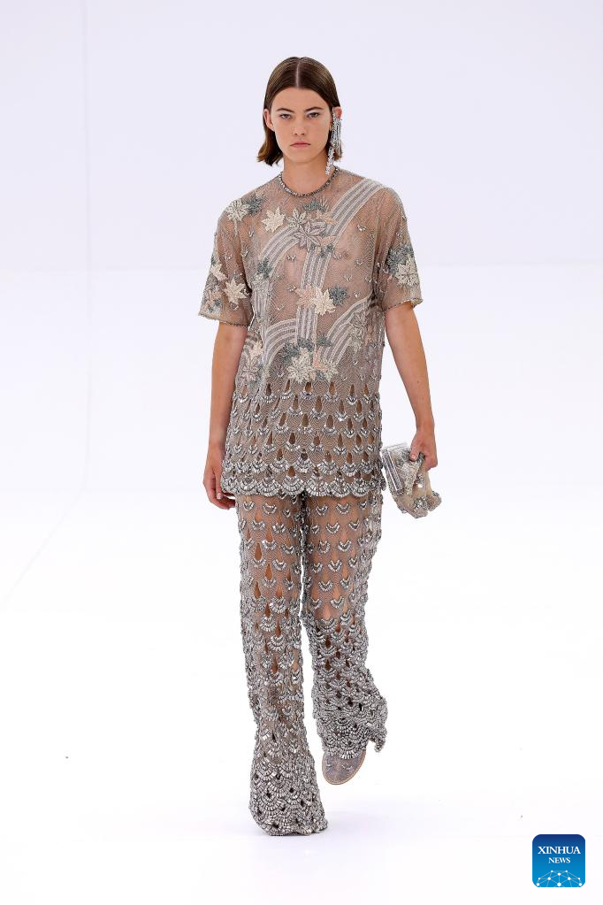 A model presents a creation from the Fall/Winter 2022-2023 Haute Couture collection of Fendi during the Paris Fashion Week in Paris, France, on July 7, 2022. (Photo by Piero Biasion/Xinhua)