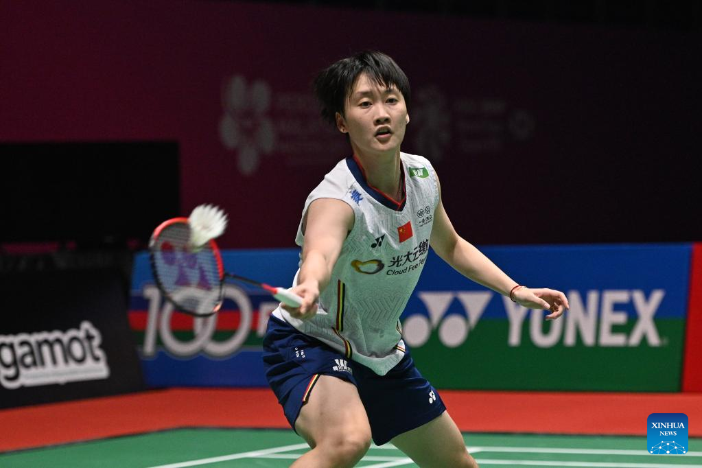 China's Chen Yufei hits a return during the women's singles final match against South Korea's An Se Young at Malaysia Masters 2022 in Kuala Lumpur, Malaysia, July 10, 2022. (Photo by Chong Voon Chung/Xinhua)