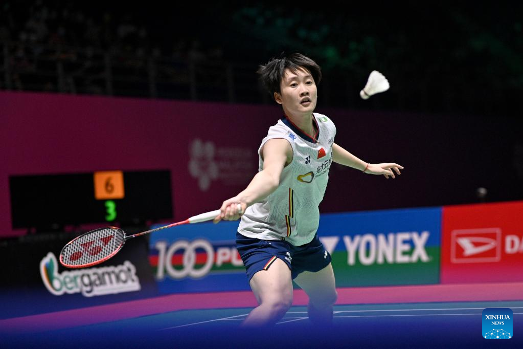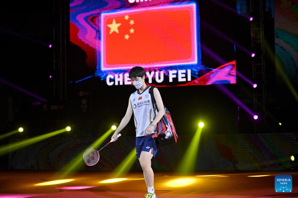China's Chen Yufei enters the court before the women's singles final match against South Korea's An Se Young at Malaysia Masters 2022 in Kuala Lumpur, Malaysia, July 10, 2022. (Photo by Chong Voon Chung/Xinhua)