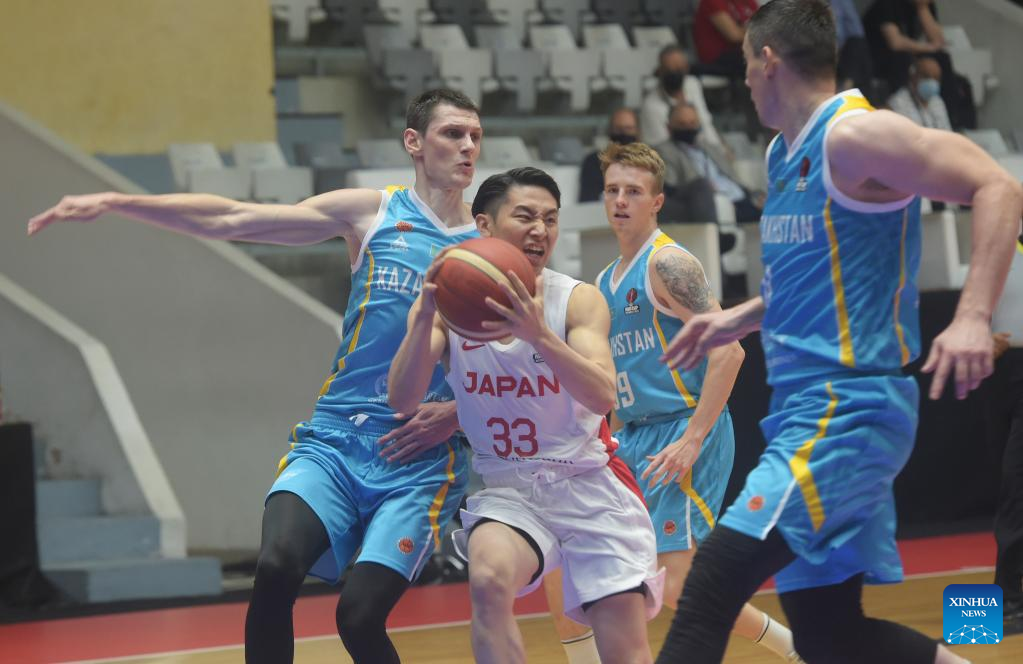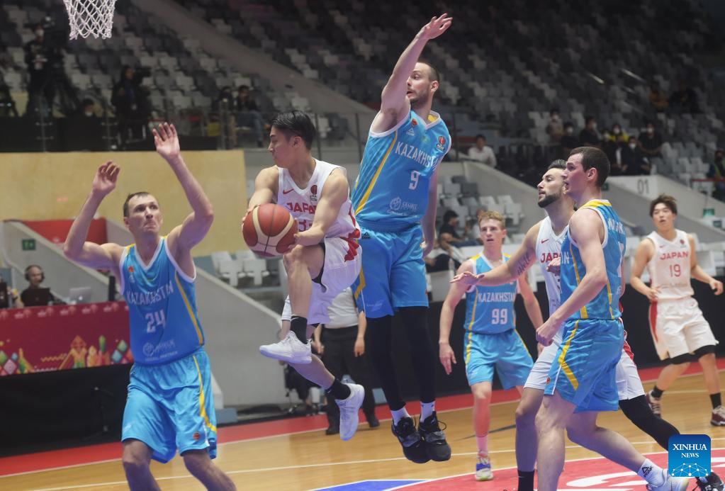 Kawamura Yuki (2nd L) of Japan competes during a Group C match against Kazakhstan at the FIBA Asia Cup 2022 in Jakarta, Indonesia, July 13, 2022. (Xinhua/Zulkarnain)