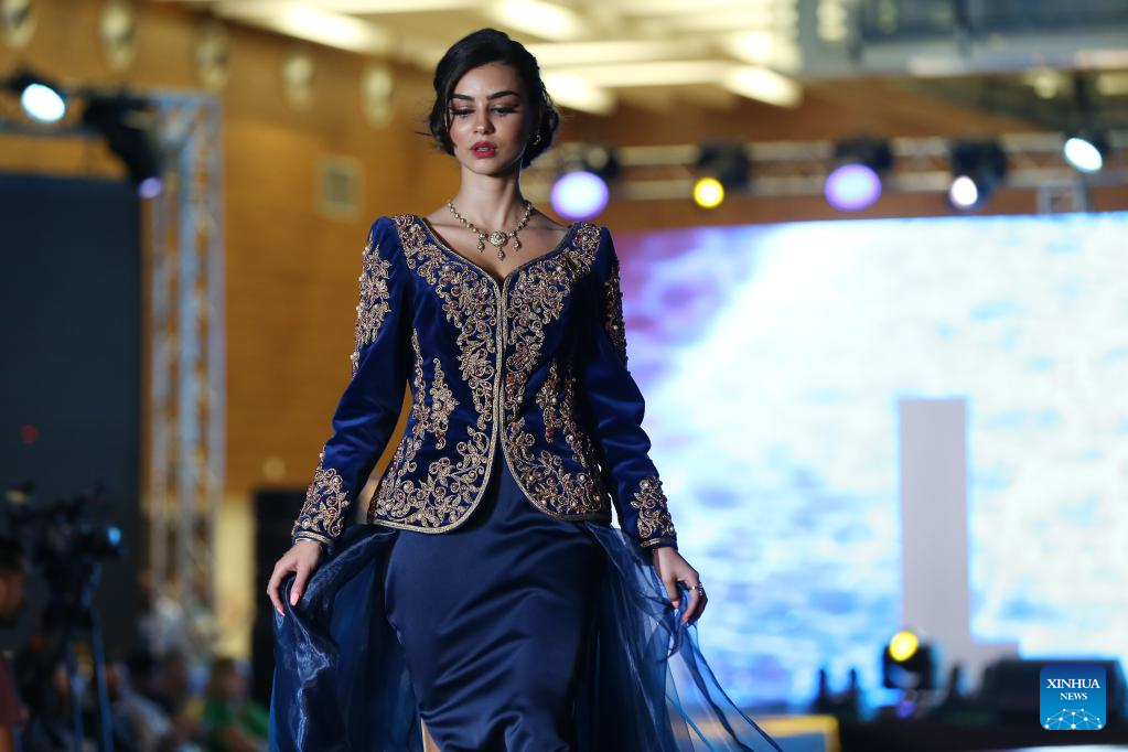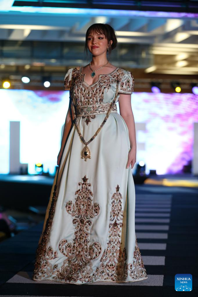 A model presents a creation during a fashion show in Algiers, Algeria, on July 15, 2022. (Xinhua)