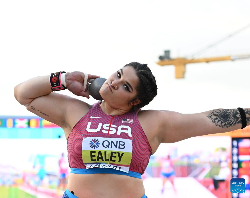 Chase Ealey of the United States competes during the women's shot put final at the World Athletics Championships Oregon22 in Eugene, Oregon, the United States, July 16, 2022. (Xinhua/Wu Xiaoling)