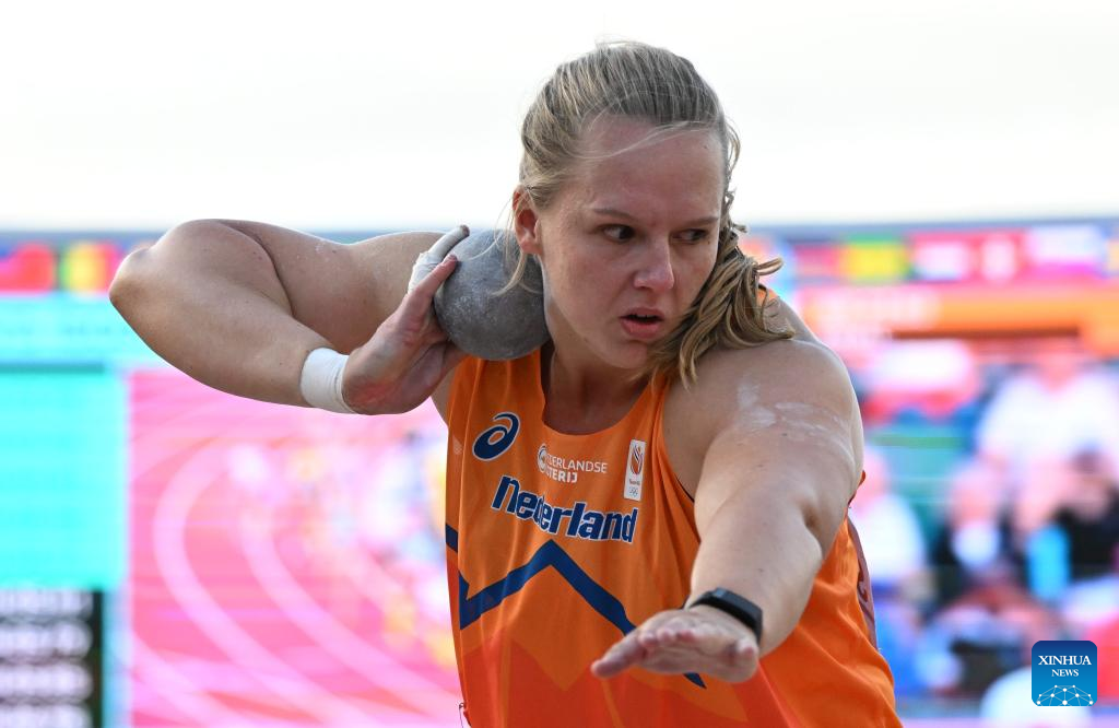 Jessica Schilder of the Netherlands competes during the women's shot put final at the World Athletics Championships Oregon22 in Eugene, Oregon, the United States, July 16, 2022. (Xinhua/Wu Xiaoling)