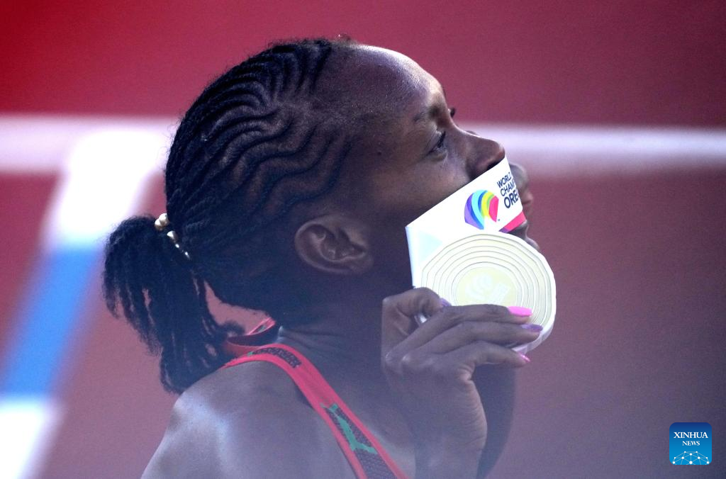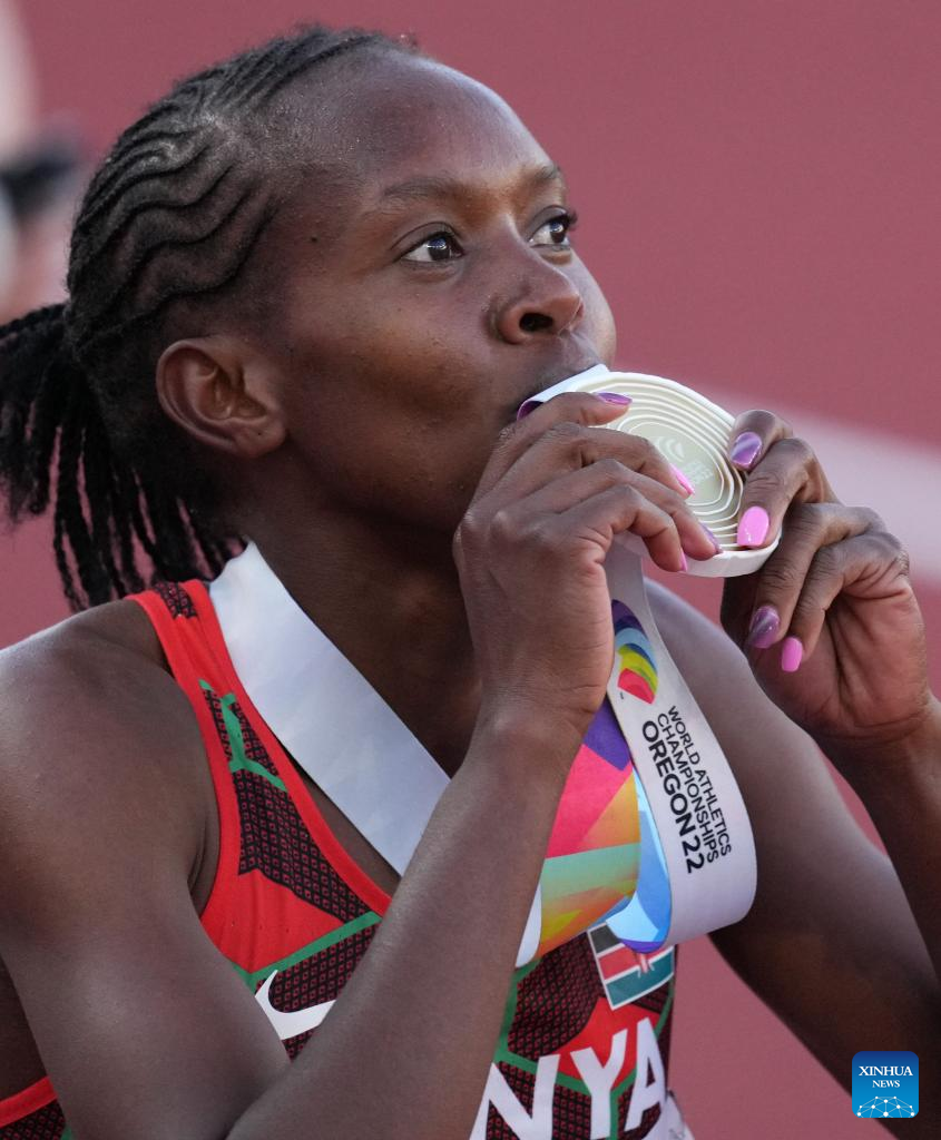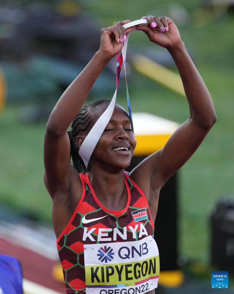 Eugene, United States, July 18 (Xinhua) -- Two-time Olympic champion Faith Kipyegon of Kenya won her second 1500m title at the World Athletics Championship here on Monday.