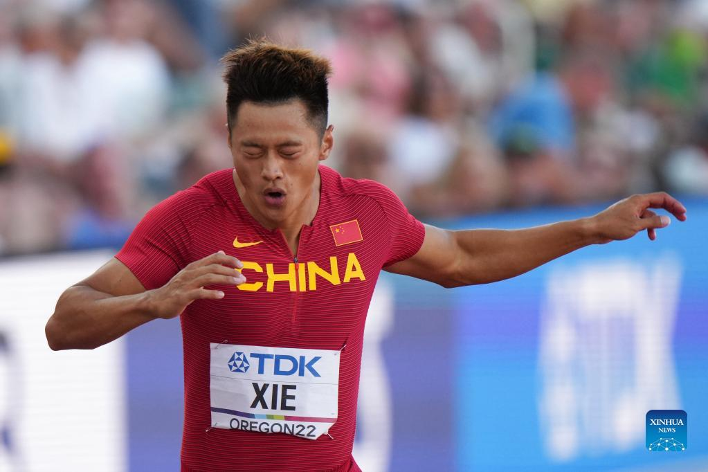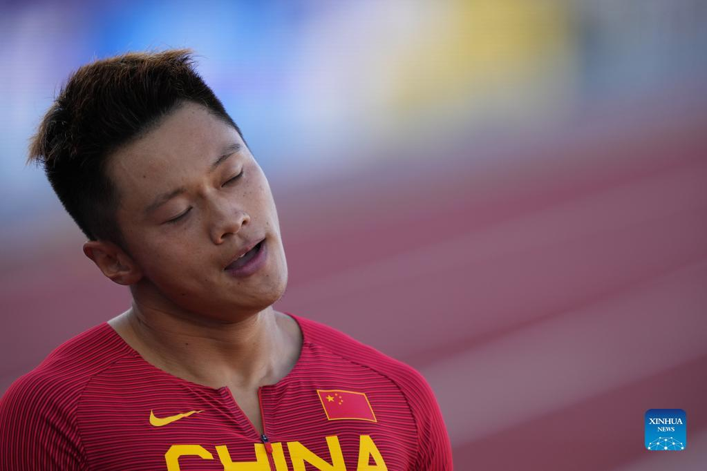 Xie Zhenye of China reacts after the men's 200m semifinal at the World Athletics Championships Oregon22 in Eugene, Oregon, the United States, July 19, 2022. (Xinhua/Wang Ying)