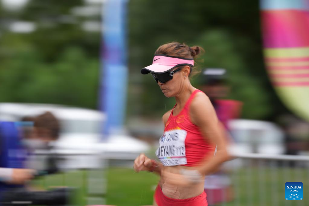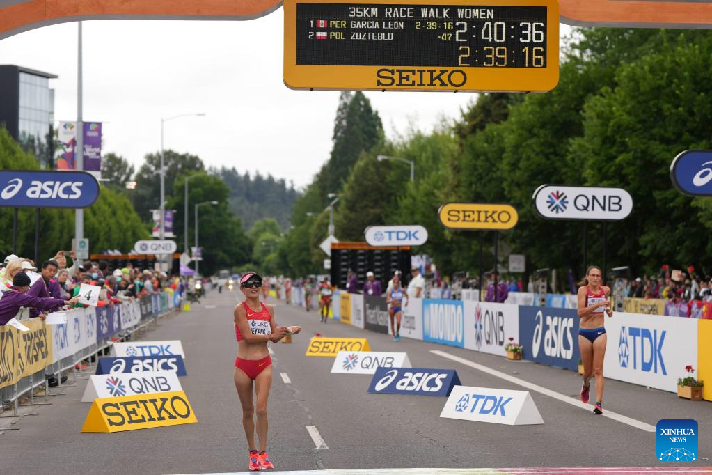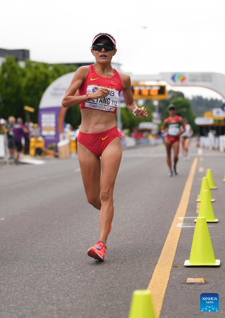 Qieyang Shijie of China competes during the women's 35km Race Walk final at the World Athletics Championships Oregon22 in Eugene, Oregon, the United States, July 22, 2022. (Xinhua/Wu Xiaoling)