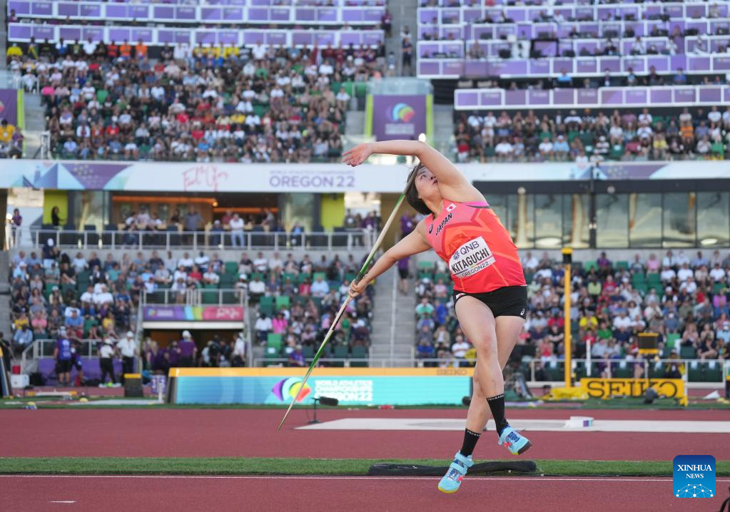 Kitaguchi Haruka of Japan competes during the women's javelin throw final at the World Athletics Championships Oregon22 in Eugene, Oregon, the United States, July 22, 2022. (Xinhua/Wu Xiaoling)