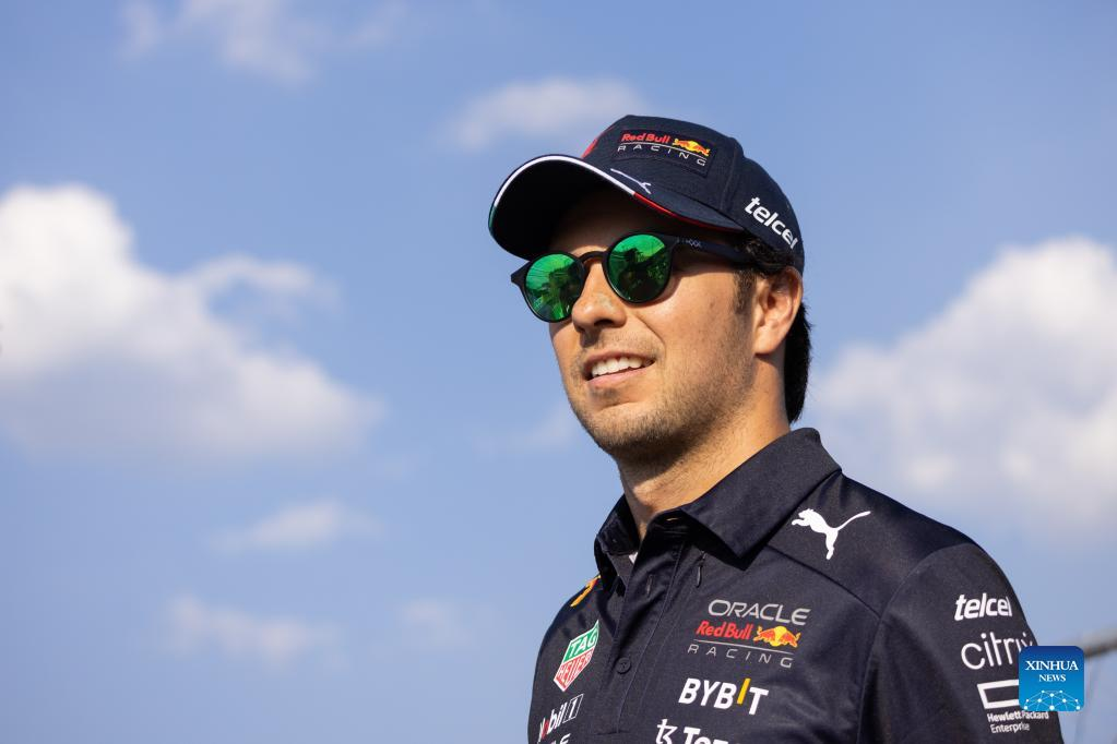 Red Bull Racing's Mexican driver Sergio Perez meets the fans during a pit lane walk session at Hungaroring in Mogyorod, Hungary, July 28, 2022. (Photo by Attila Volgyi/Xinhua)