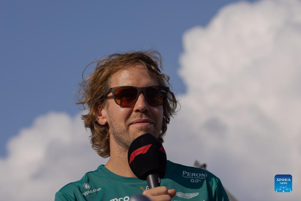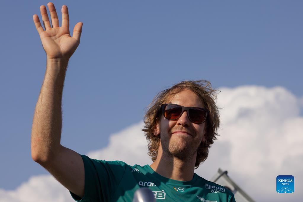 Aston Martin's German driver Sebastian Vettel meets the fans during a pit lane walk session at Hungaroring in Mogyorod, Hungary, July 28, 2022. (Photo by Attila Volgyi/Xinhua)