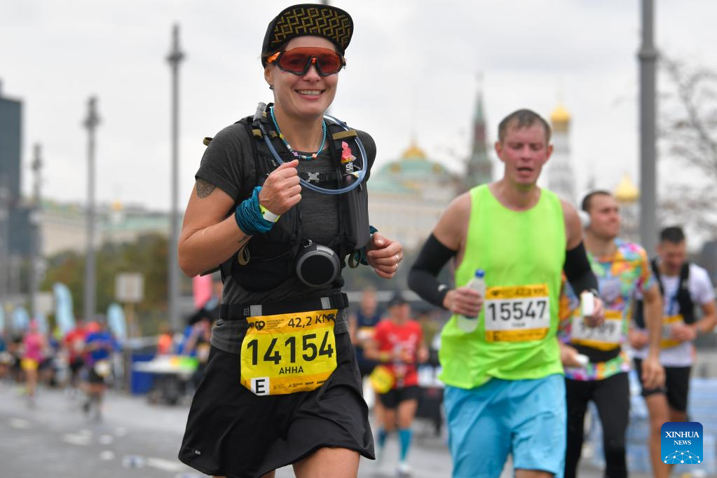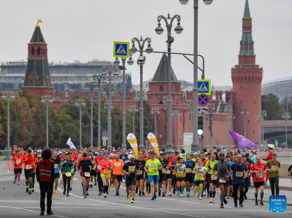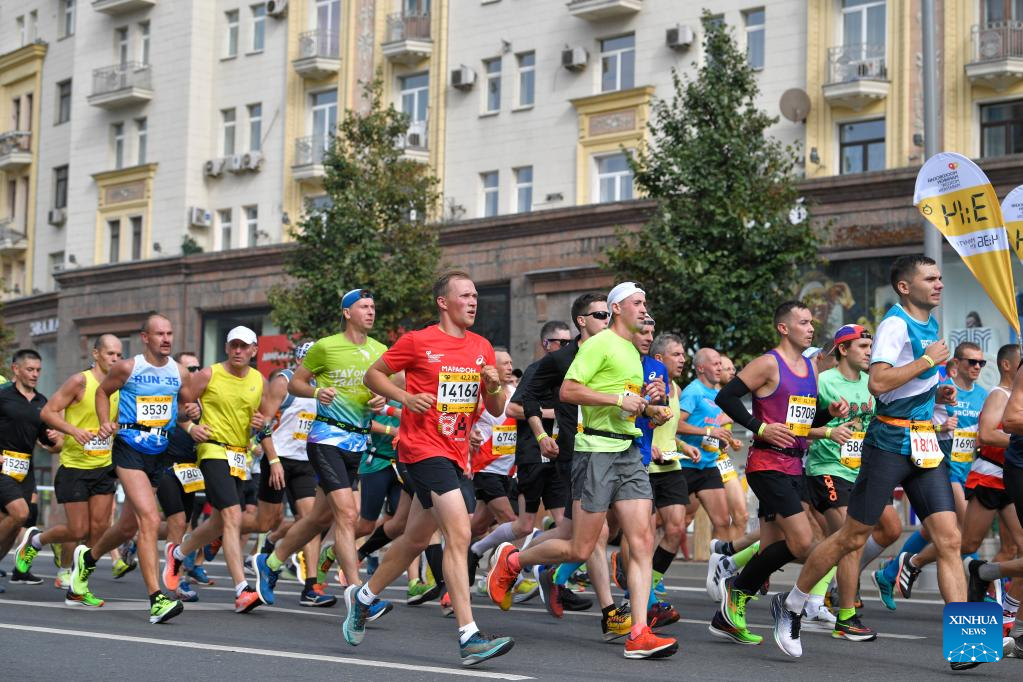 Participants take part in the Moscow Marathon in Moscow, Russia, on Sept. 18, 2022. (Photo by Alexander Zemlianichenko Jr/Xinhua)