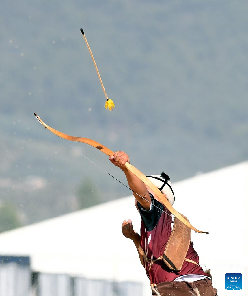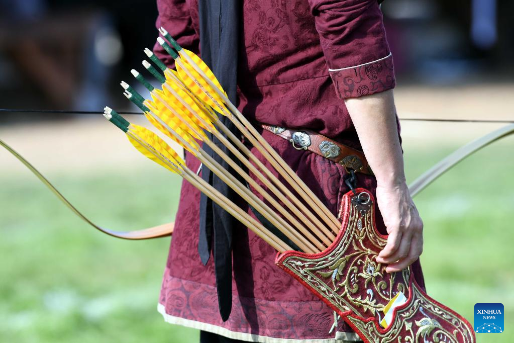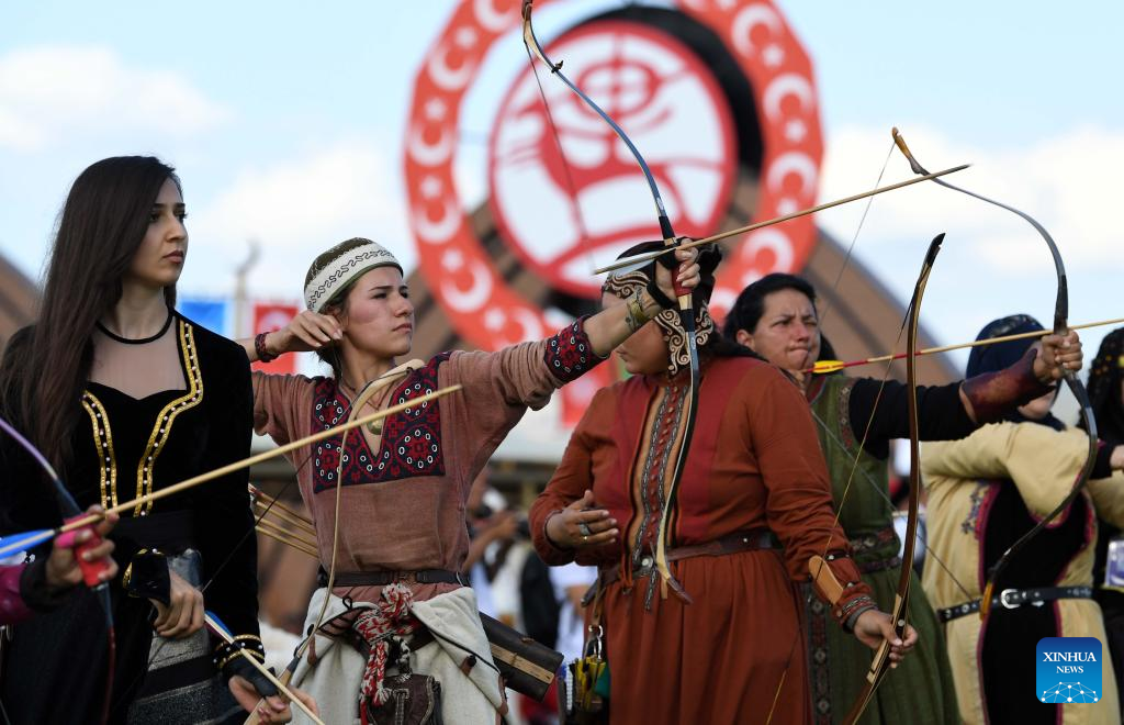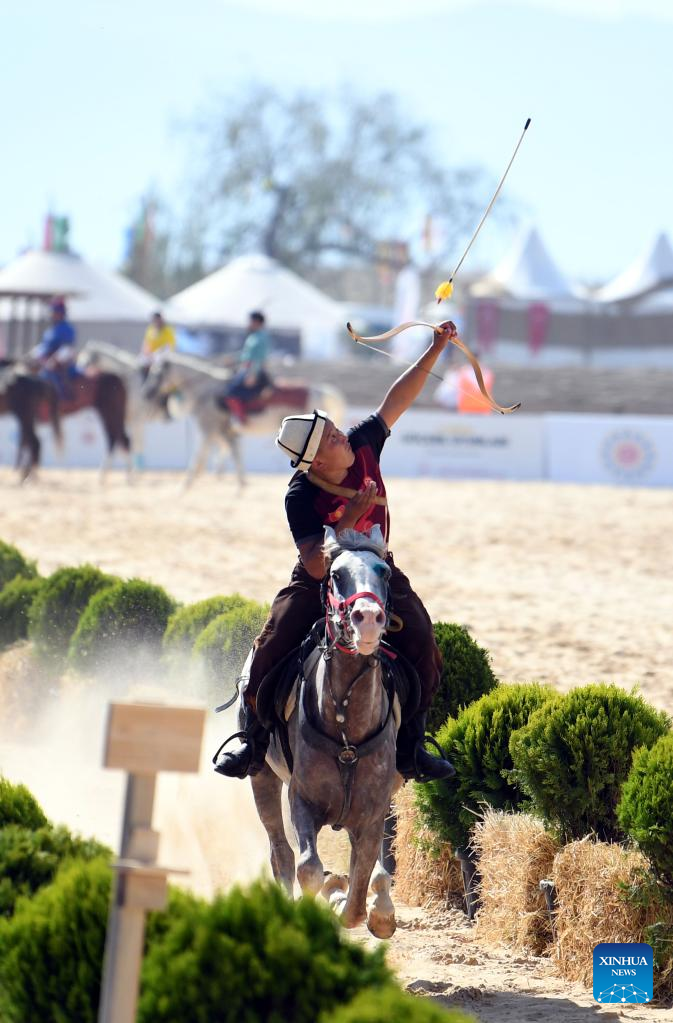 Contestants compete in the traditional archery event of the 4th World Nomad Games in Iznik, Türkiye, Sept. 29, 2022. (Xinhua/Shadati)
