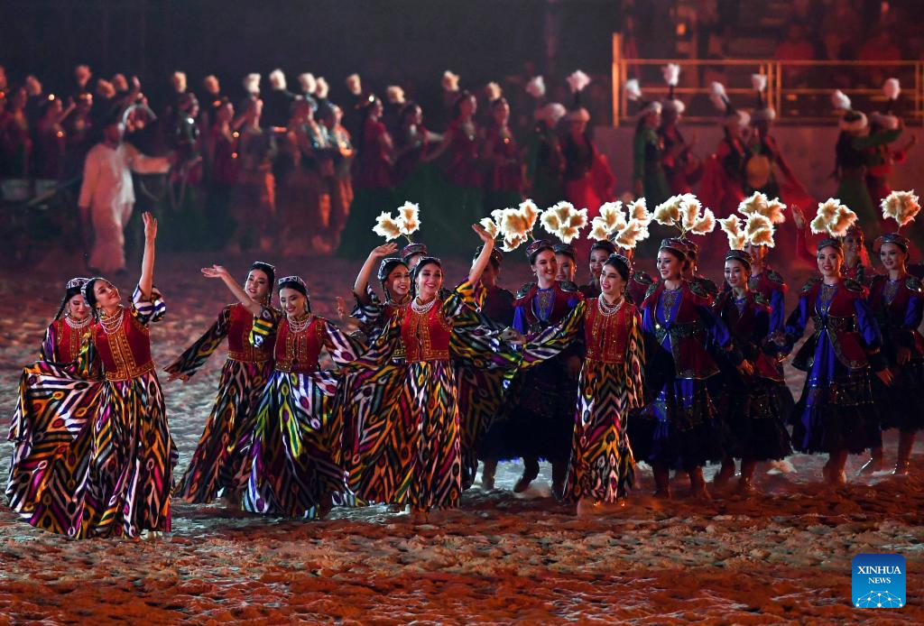 Artists perform during the opening ceremony of the 4th World Nomad Games in Iznik, Türkiye, Sept. 29, 2022. (Xinhua/Shadati)