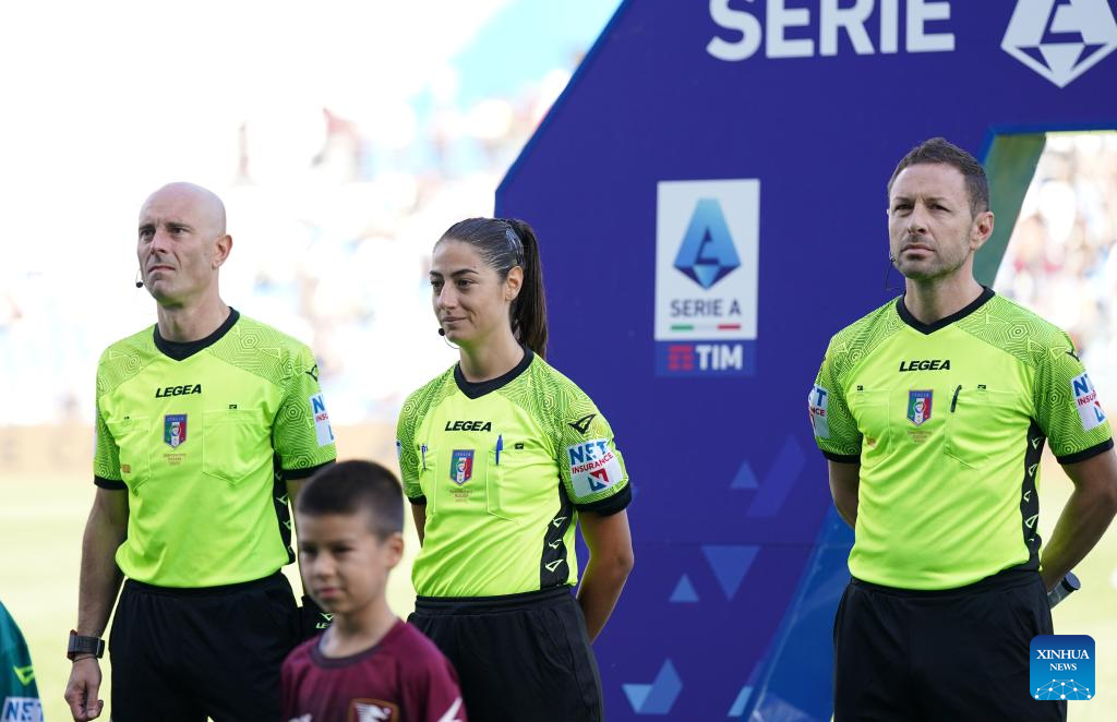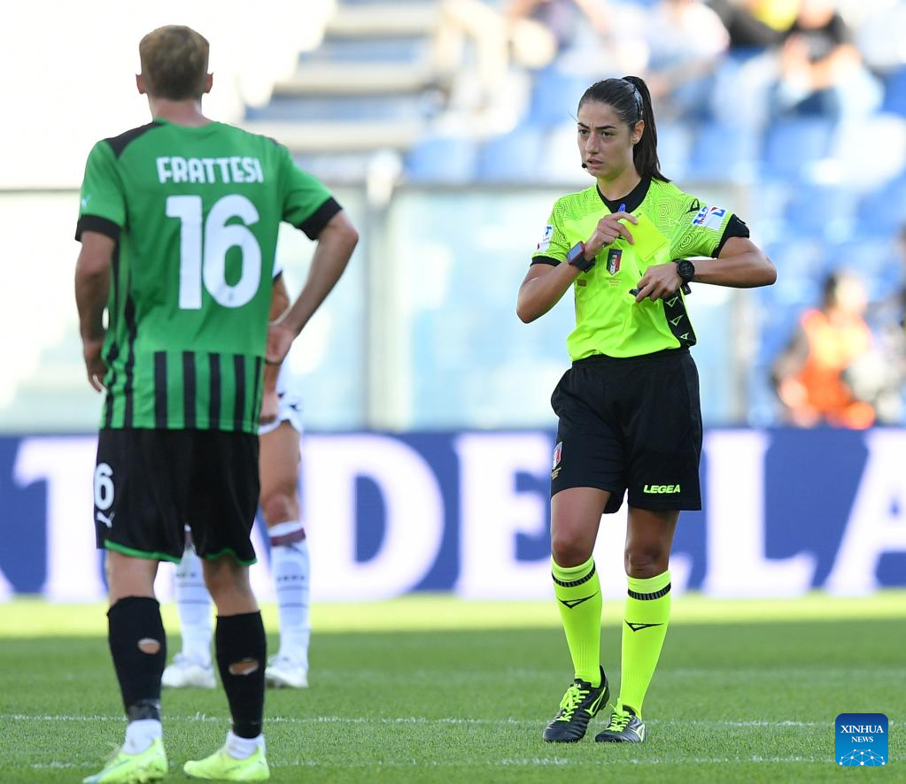 Referee Maria Sole Ferrieri Caputi (R) is seen during a Serie A football match between Sassuolo and Salernitana in Reggio Emilia, Italy, on Oct. 2, 2022. (Str/Xinhua)