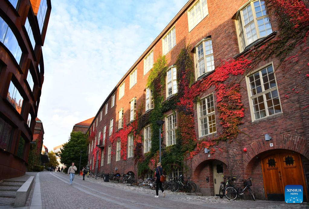 People walk at the KTH Royal Institute of Technology in Stockholm, Sweden, Oct. 7, 2022. (Xinhua/Ren Pengfei)