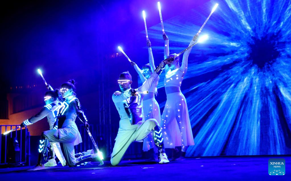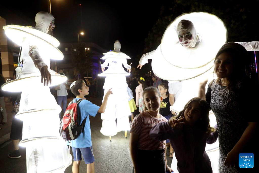 Street show artists perform during a street art festival in central Israeli city of Modiin, on Oct. 11, 2022. (Photo by Gil Cohen Magen/Xinhua)