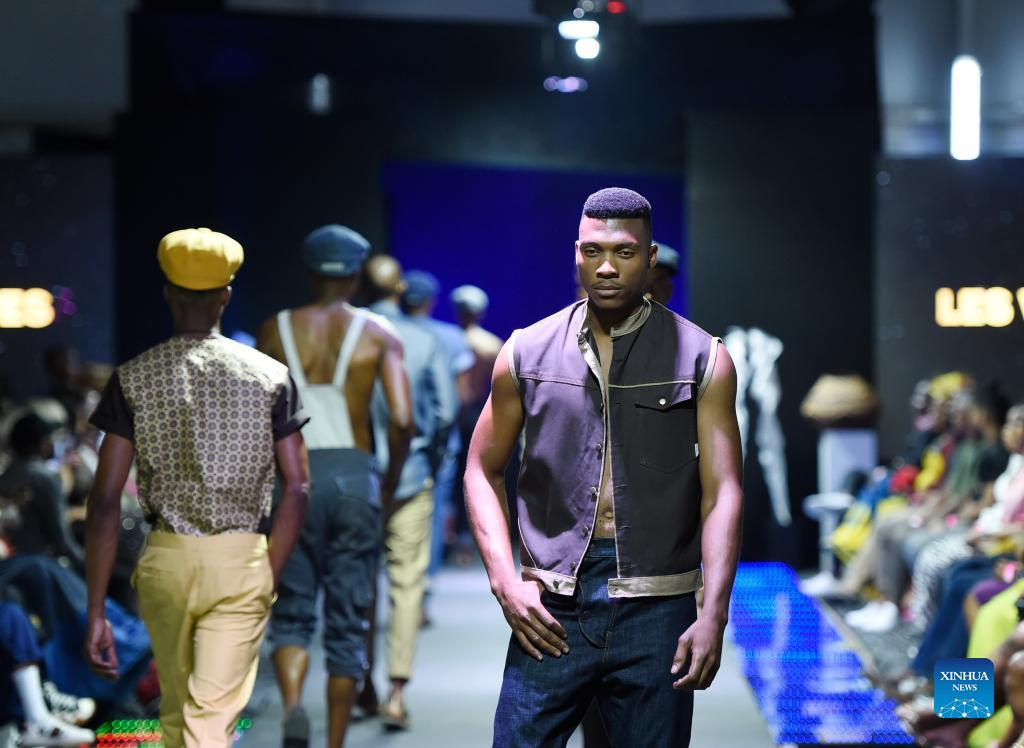 Models present creations during the 8th edition of Fashion Without Borders in Gaborone, capital of Botswana, Oct. 15, 2022. The 8th edition of Fashion Without Borders was held in Gaborone, Botswana, showcasing creations of 15 fashion designers from the Southern African Development Community (SADC) and celebrating the breast cancer awareness month with a touch of pink as a theme. (Photo by Tshekiso Tebalo/Xinhua)