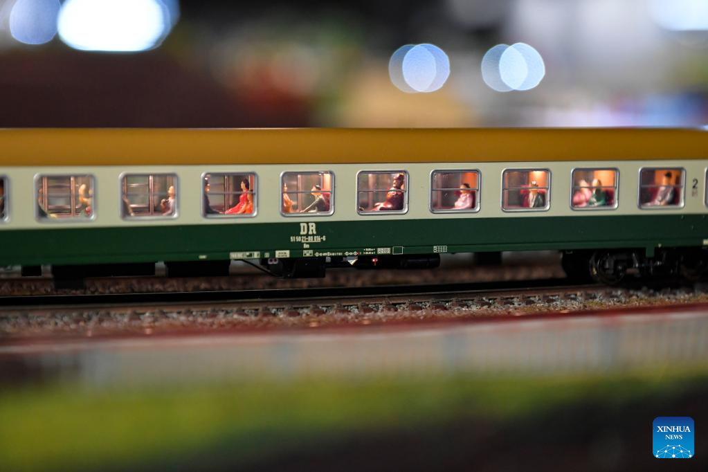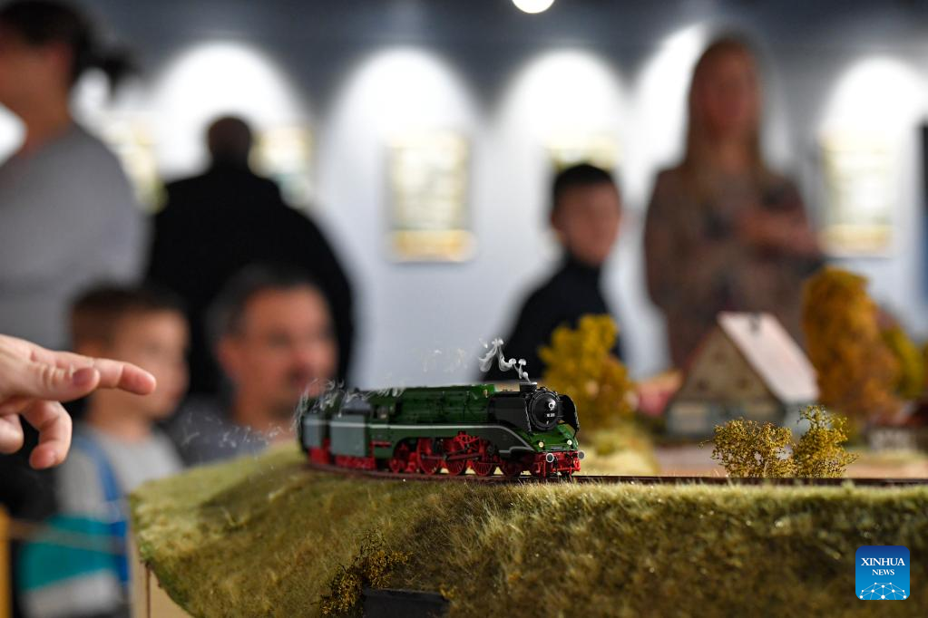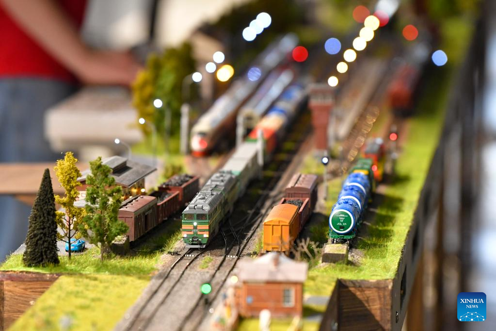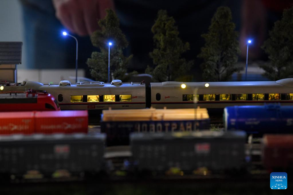 A model train is on display at a railway model exhibition in Moscow, Russia, on Oct. 21, 2022. The exhibition marks the 185th anniversary of the railways in Russia. (Photo by Alexander Zemlianichenko Jr/Xinhua)