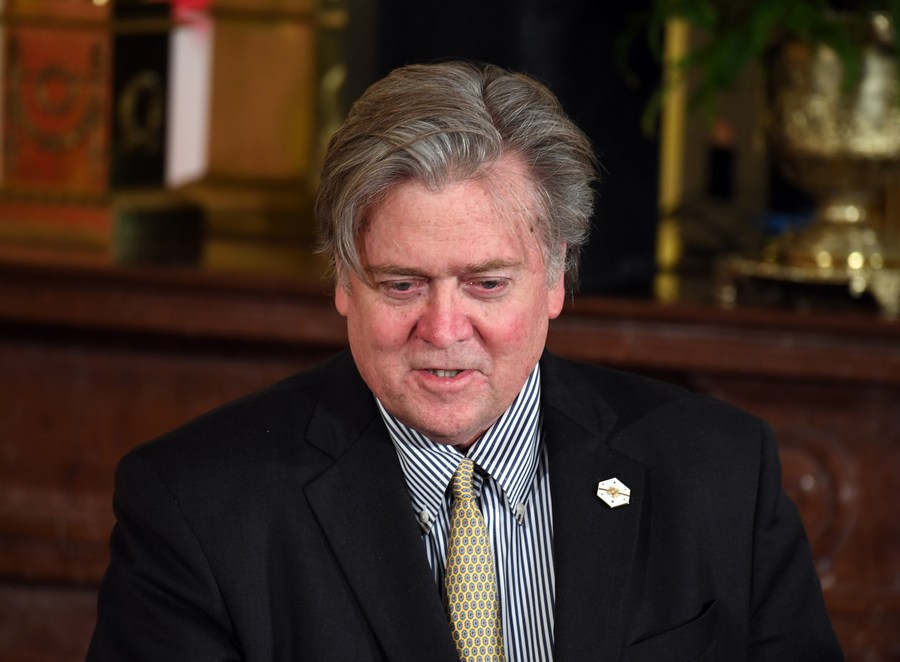 Photo taken on Feb. 13, 2017 shows then White House Chief Strategist Steve Bannon at the White House in Washington, D.C., the United States. (Xinhua/Yin Bogu)