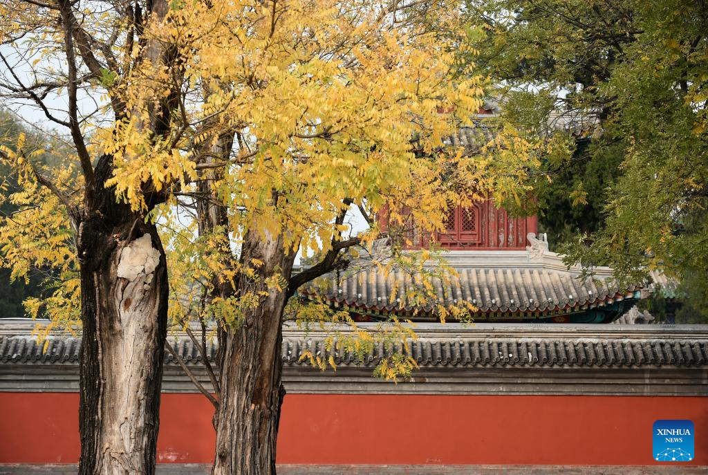 This photo taken on Oct. 26, 2022 shows the autumn scenery at the Yuanmingyuan Park, or the Old Summer Palace, in Beijing, capital of China. (Xinhua/Luo Xiaoguang)