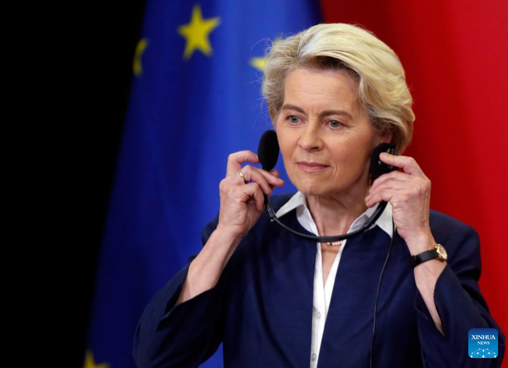 President of the European Commission Ursula von der Leyen speaks during a joint press conference with North Macedonia's Prime Minister (not pictured) in Skopje, North Macedonia, Oct. 26, 2022. The European Union (EU) will provide 500 million euros (504 million U.S. dollars) in grants for the Western Balkan countries to tackle energy crisis, European Commission chief said here Wednesday. (Photo by Tomislav Georgiev/Xinhua)