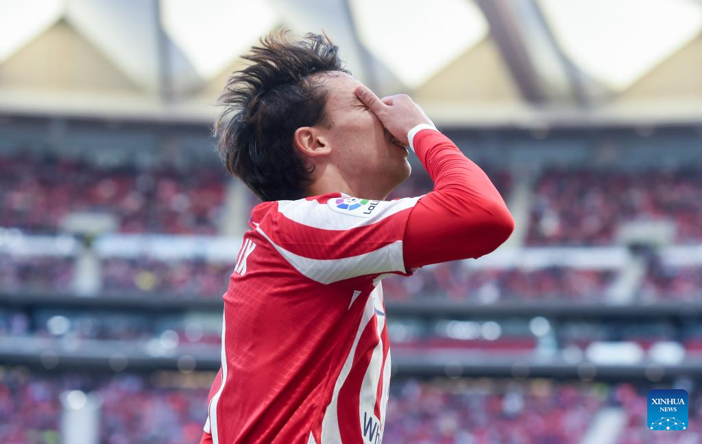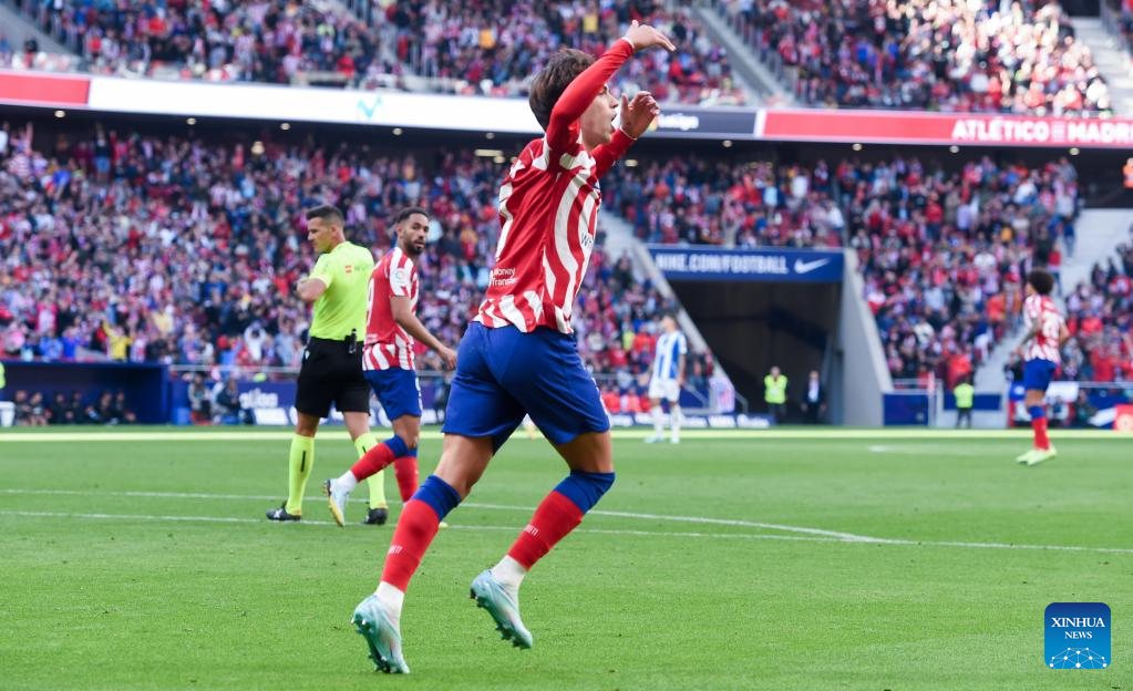 Joao Felix of Atletico de Madrid Diego celebrates a goal during a Spanish La Liga football match between Atletico de Madrid and RCD Espanyol in Madrid, Spain, Nov. 6, 2022. (Photo by Gustavo Valiente/Xinhua)