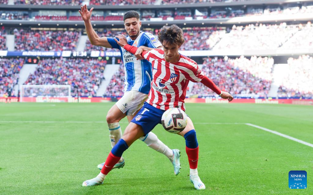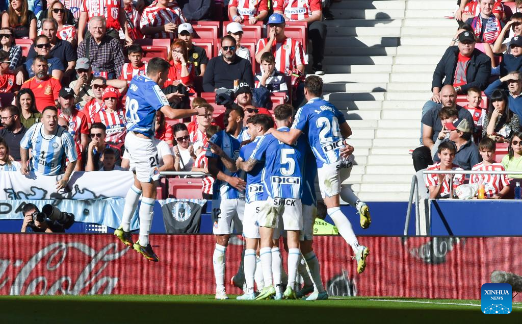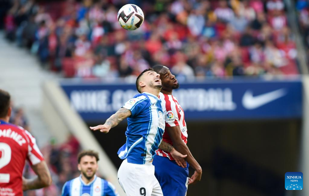 MADRID, Nov. 6 (Xinhua) -- Atletico Madrid's poor week continued on Sunday when they were held to a 1-1 draw in the Metropolitano Stadium by Espanyol, despite the visitors playing for over an hour with 10 men.