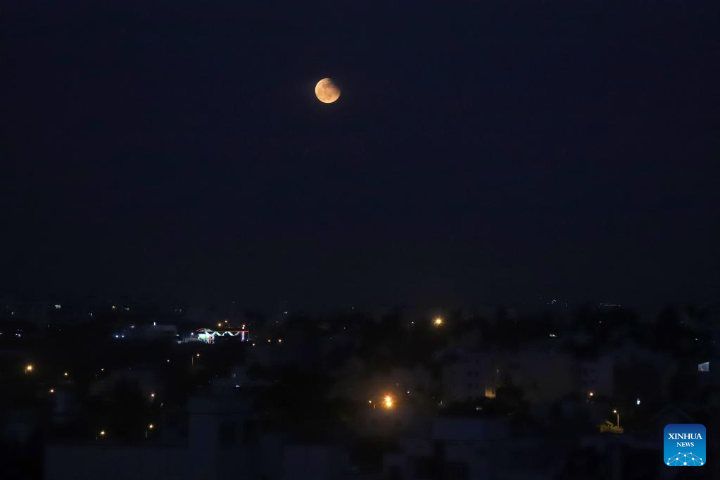The moon is seen during a lunar eclipse in Bangalore, India, Nov. 8, 2022. (Str/Xinhua)