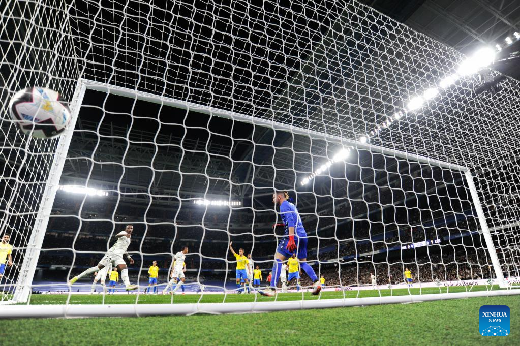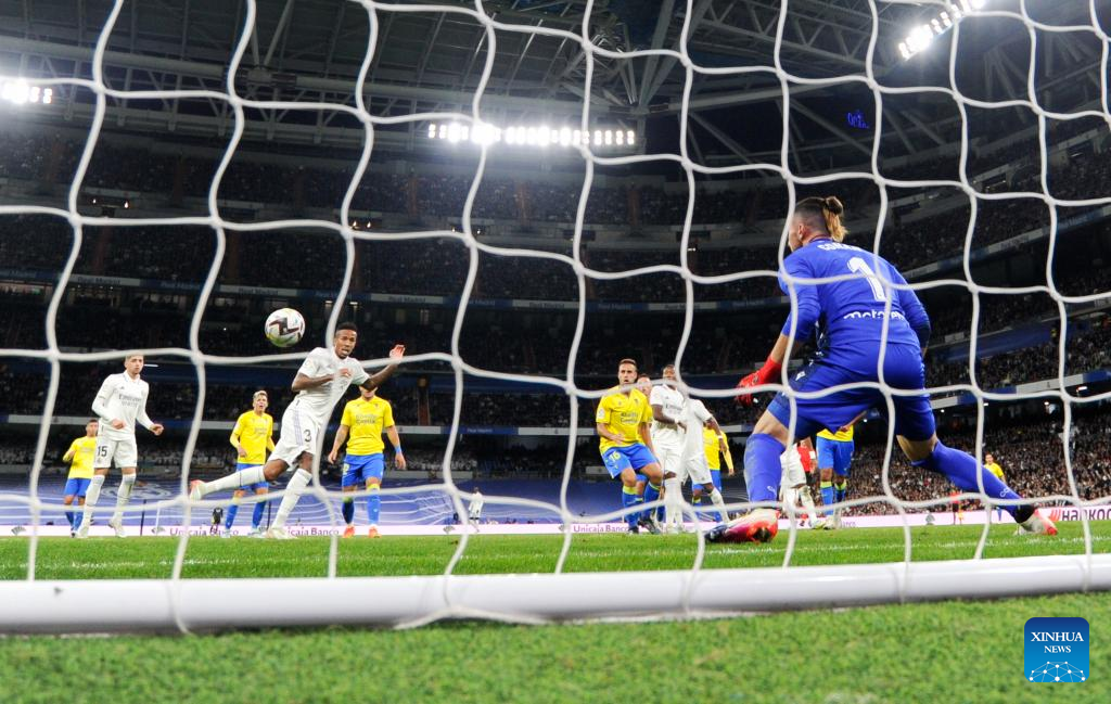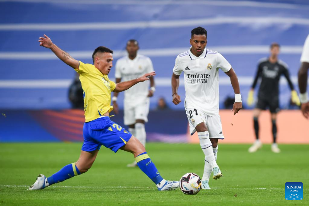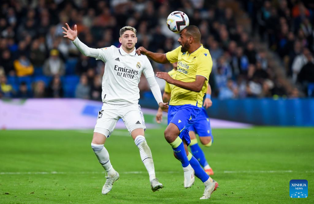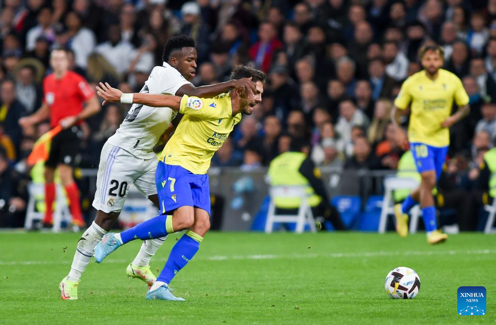 MADRID, Nov. 10 (Xinhua) -- Real Madrid went into the break for the FIFA World Cup two points behind FC Barcelona after a 2-1 home win over Cadiz on Thursday night.
