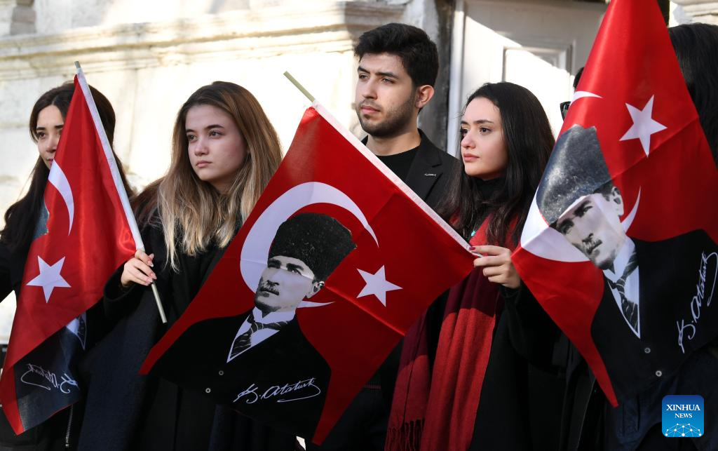 People gather to commemorate the 84th death anniversary of Mustafa Kemal Ataturk in Istanbul, Türkiye, Nov. 10, 2022. Türkiye mourned on Thursday the 84th death anniversary of Mustafa Kemal Ataturk, founder of the Republic of Türkiye. (Xinhua/Shadati)