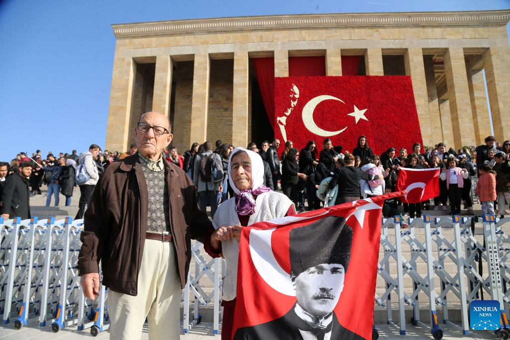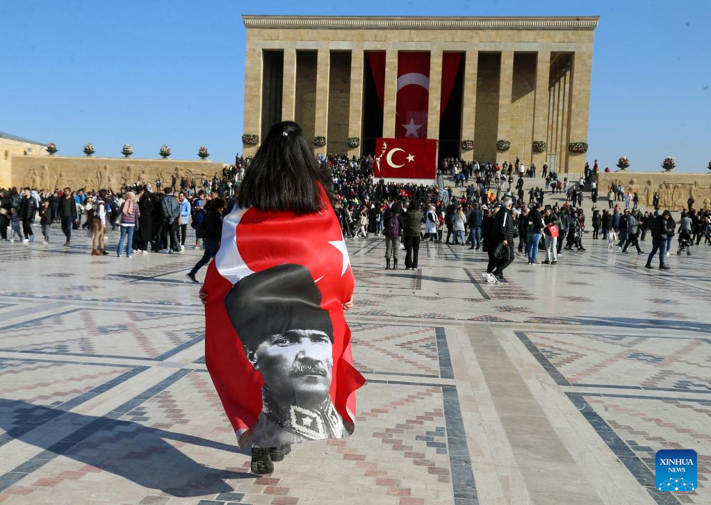 People visit Anitkabir, the mausoleum of the founder of the Turkish Republic Mustafa Kemal Ataturk, during the 84th death anniversary of Mustafa Kemal Ataturk in Ankara, Türkiye, on Nov. 10, 2022. (Photo by Mustafa Kaya/Xinhua)