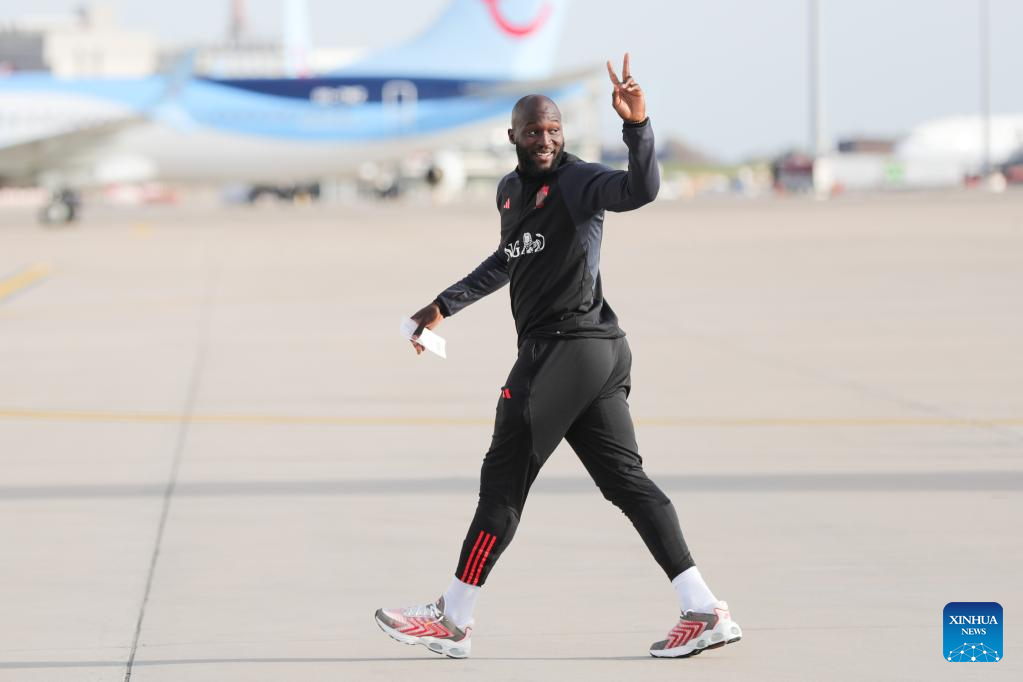 Romelu Lukaku of Team Belgium reacts at the Brussels Airport in Zaventem, Belgium, Nov. 15, 2022. Team Belgium started their journey to the Middle East as they prepare for the upcoming Qatar 2022 World Cup. (Xinhua/Zheng Huansong)