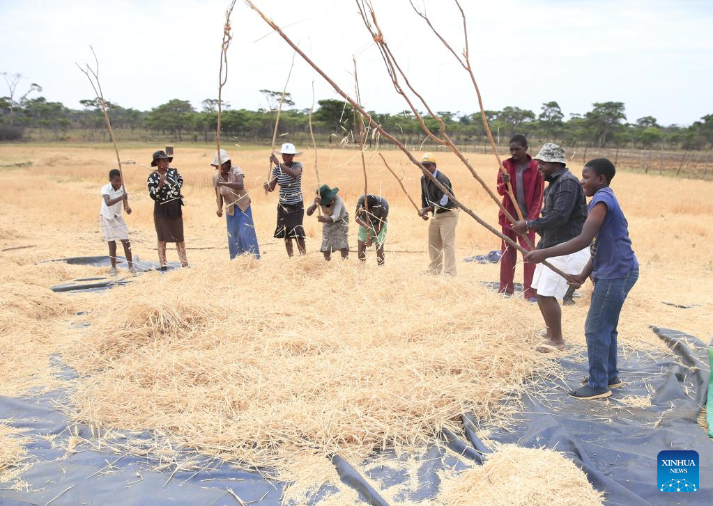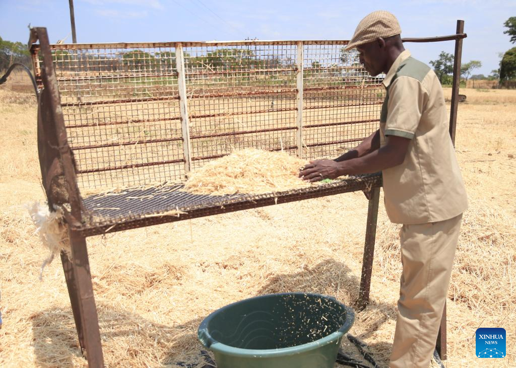 CHEGUTU, Zimbabwe, Nov. 15 (Xinhua) -- Amid the mid-morning sweltering heat, George Ngwarwi hurriedly pushed his family to finish off harvesting their remaining portion of wheat at his six-hectare farm before the early rains fell.