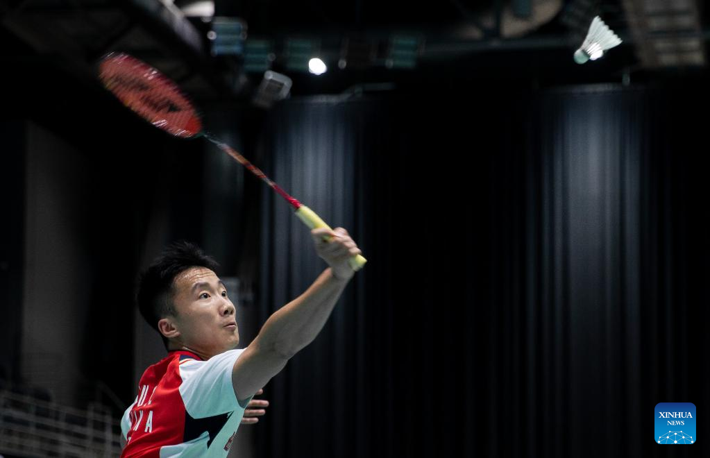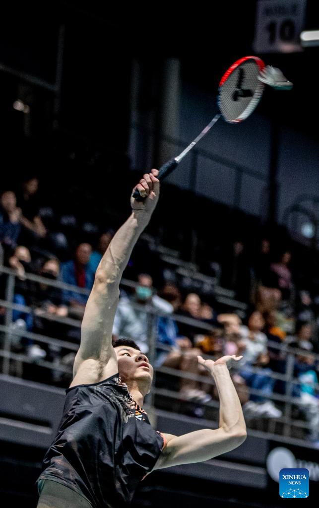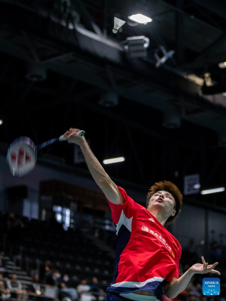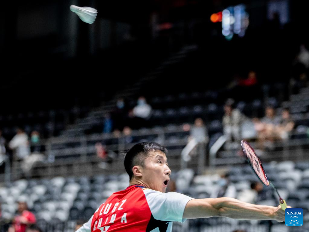 Lu Guangzu of China hits a return during men's singles 2nd round match against Lee Zii Jia of Malaysia at the BWF Australian Open 2022 in Sydney, Australia, Nov. 17, 2022. (Photo by Hu Jingchen/Xinhua)