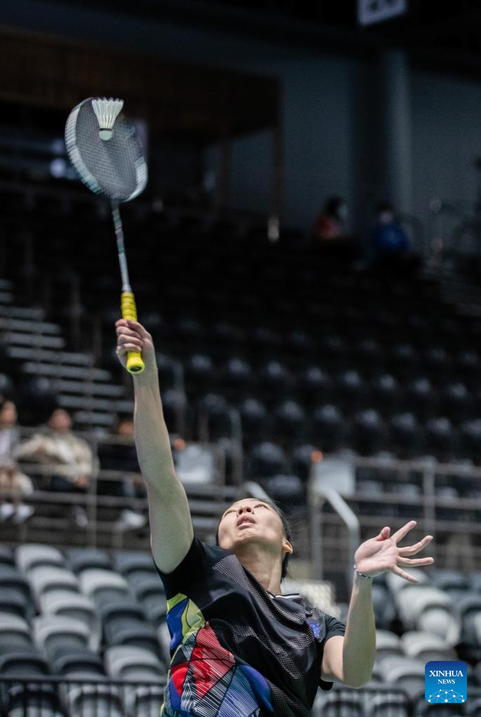Hsuan-Yu Wendy Chen of Australia competes during women's singles 2nd round match against Han Yue of China at the BWF Australian Open 2022 in Sydney, Australia, Nov. 17, 2022. (Photo by Hu Jingchen/Xinhua)