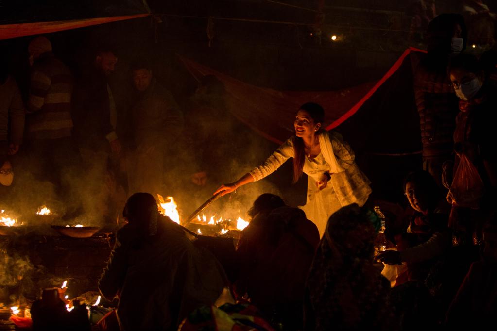 A woman lights an oil lamp during the Bala Chaturdashi Festival at the Pashupatinath Temple in Kathmandu, Nepal, Nov. 21, 2022. (Photo by Sulav Shrestha/Xinhua)