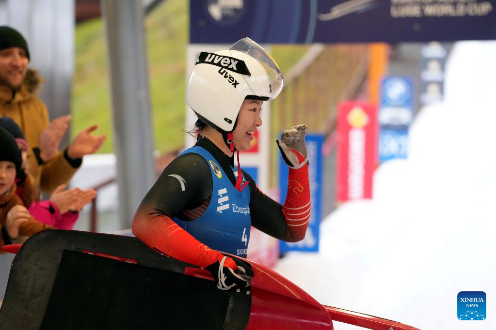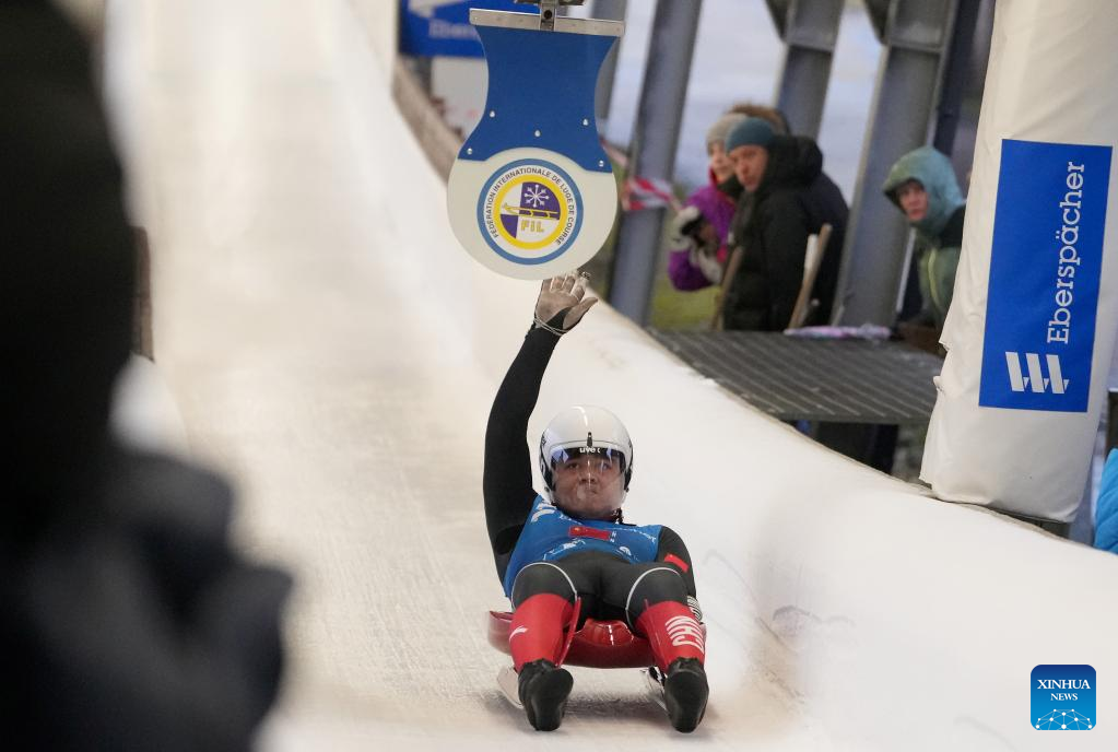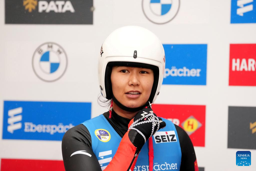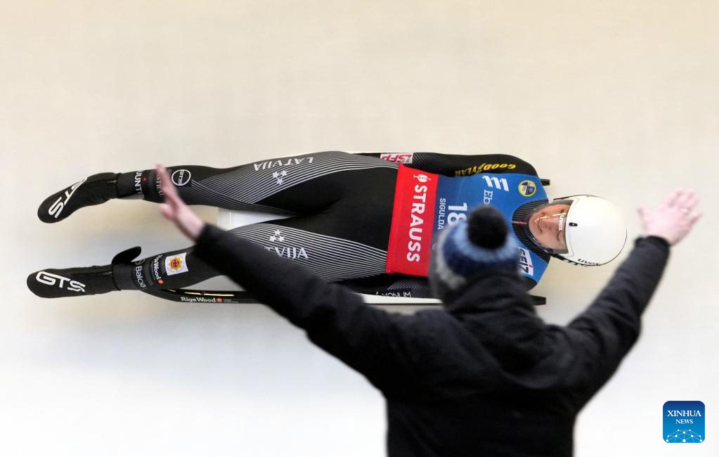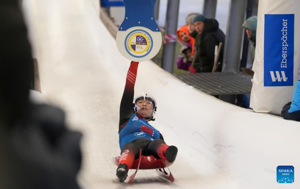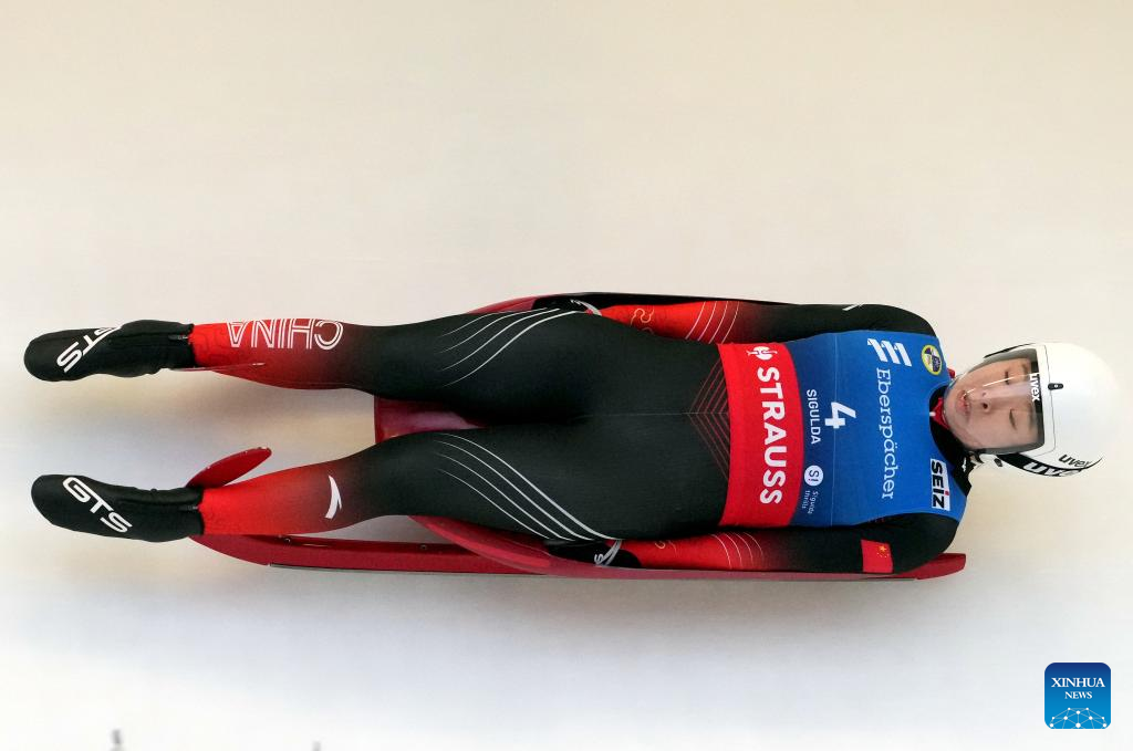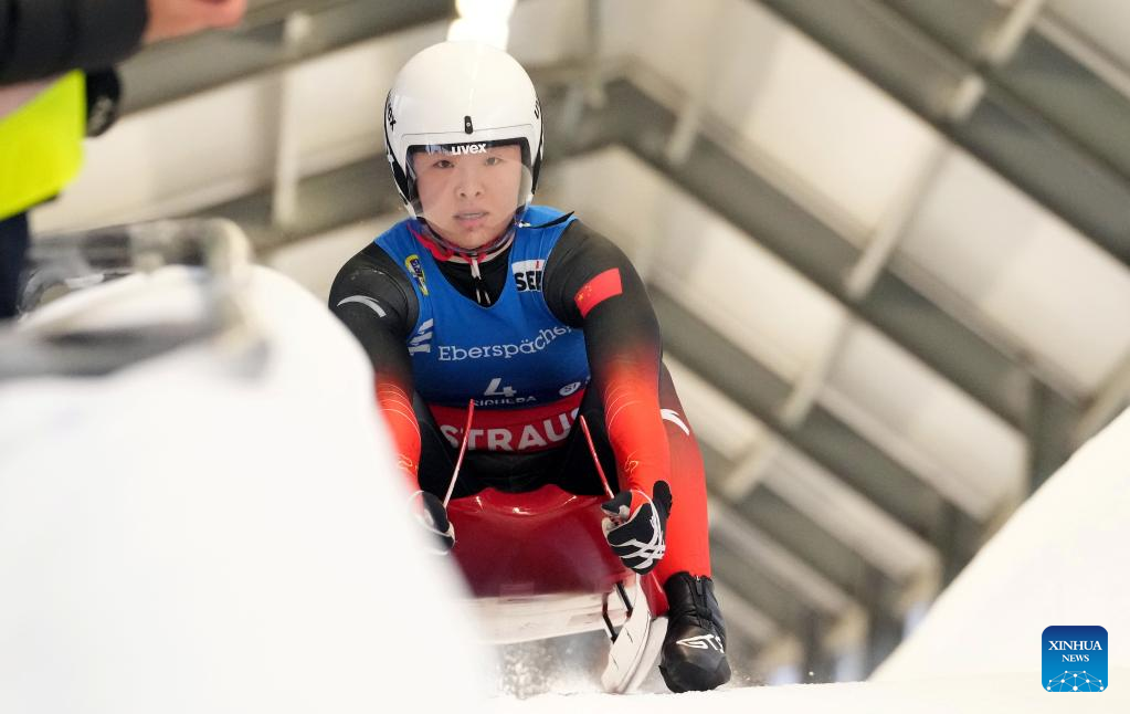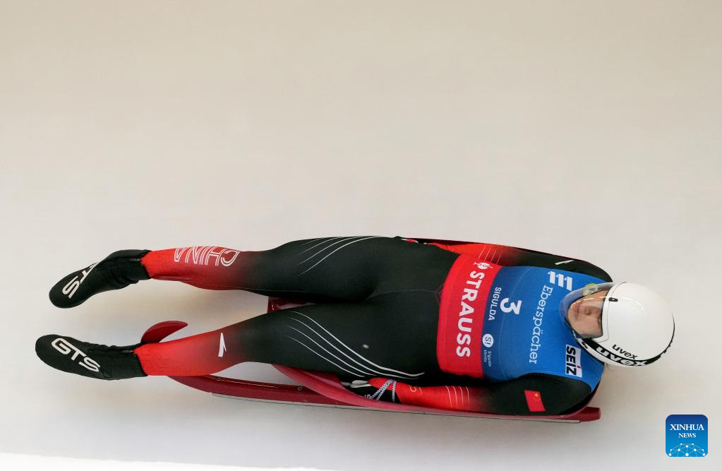 Alabati Aihemaiti of China competes during the team relay race at the FIL Eberspacher Luge World Cup in Sigulda, Latvia, Jan. 15, 2023. (Photo by Edijs Palens/Xinhua)