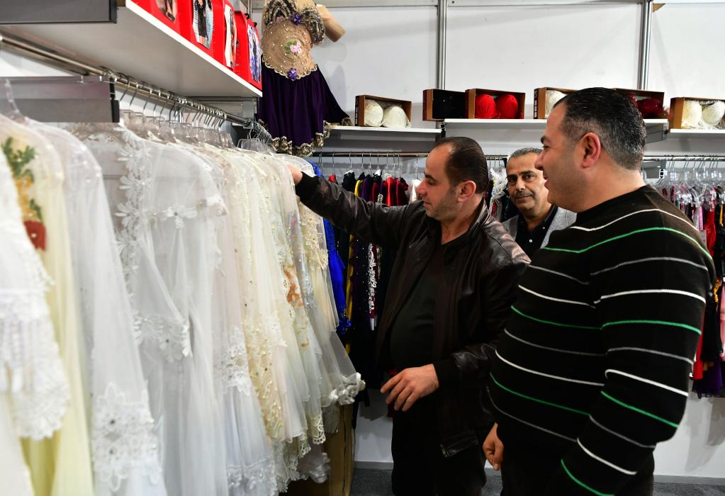 People attend a clothing fair of "Made in Syria" exhibition in Damascus, Syria, on Jan. 19, 2023. (Photo by Ammar Safarjalani/Xinhua)