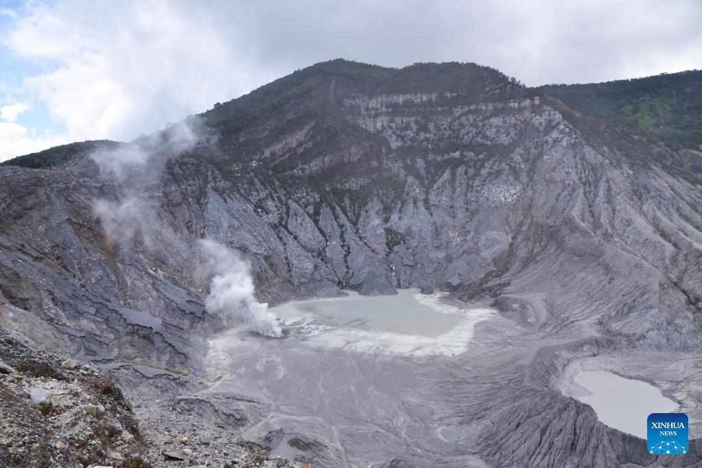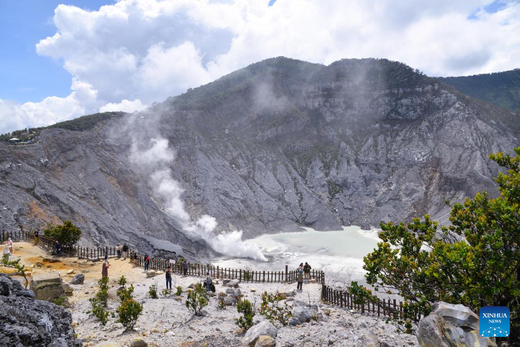 This photo taken on Jan. 22, 2023 shows the crater of Tangkuban Perahu, a volcano near the city of Bandung, Indonesia. The Tangkuban Perahu volcano has attracted many visitors during the Spring Festival holiday in Indonesia. The Chinese Lunar New Year, or Spring Festival, falls on Sunday. (Xinhua/Xu Qin)