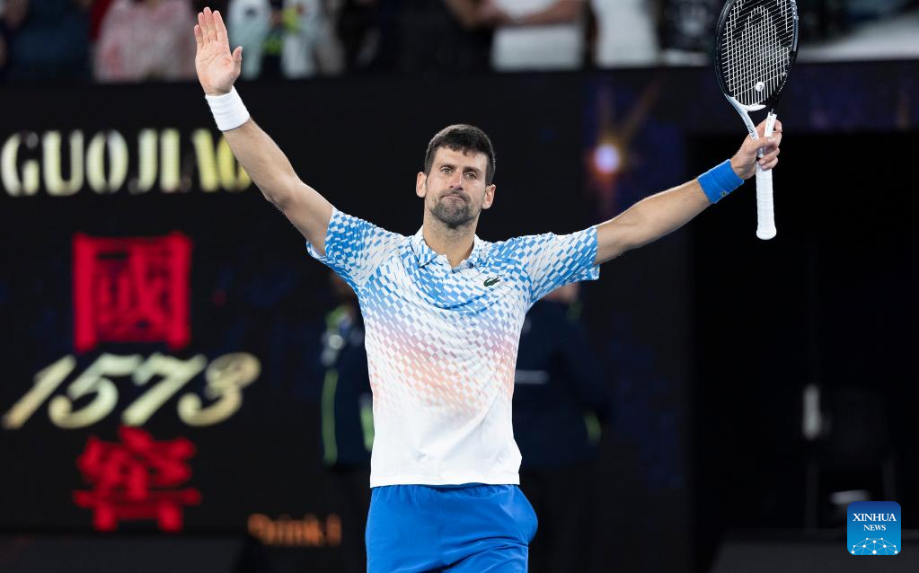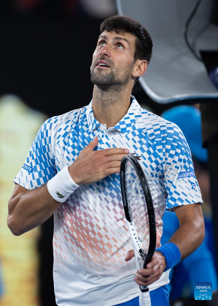 MELBOURNE, Jan. 25 (Xinhua) -- Peerless Novak Djokovic strengthened his overwhelming Australian Open favoritism on Wednesday with a quarterfinal thrashing of fifth seed Andrey Rublev, while Aryna Sabalenka remained on track to win her first Grand Slam title.