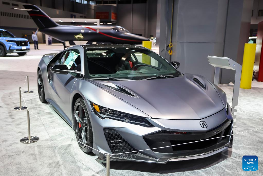 A Honda Acura NSX vehicle is on display during the media preview of Chicago Auto Show in Chicago, the United States, Feb. 9, 2023.