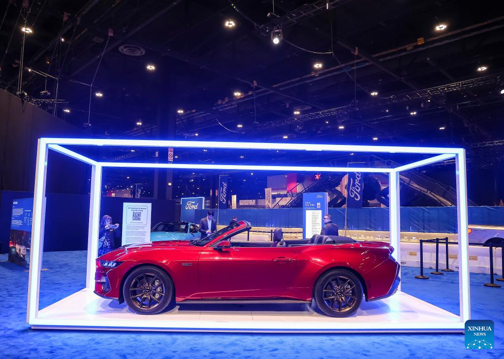 A Ford Mustang vehicle is on display during the media preview of Chicago Auto Show in Chicago, the United States, Feb. 9, 2023.