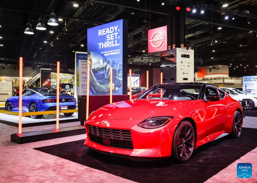Nissan 370Z vehicles are on display during the media preview of Chicago Auto Show in Chicago, the United States, Feb. 9, 2023.
