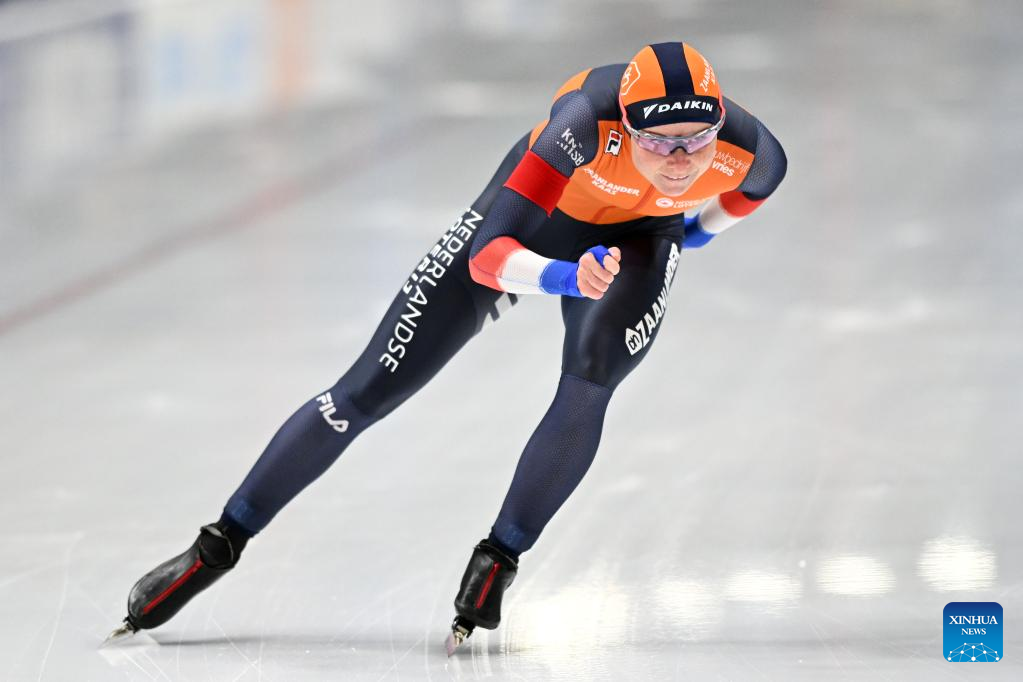 Marijke Groenewoud of the Netherlands competes during women's 1500m Division A race on the Day 2 of the 2022-2023 ISU Speed Skating World Cup in Tomaszow Mazowiecki, Poland, Feb. 11, 2023. (Photo by Jan Kowalski/Xinhua)