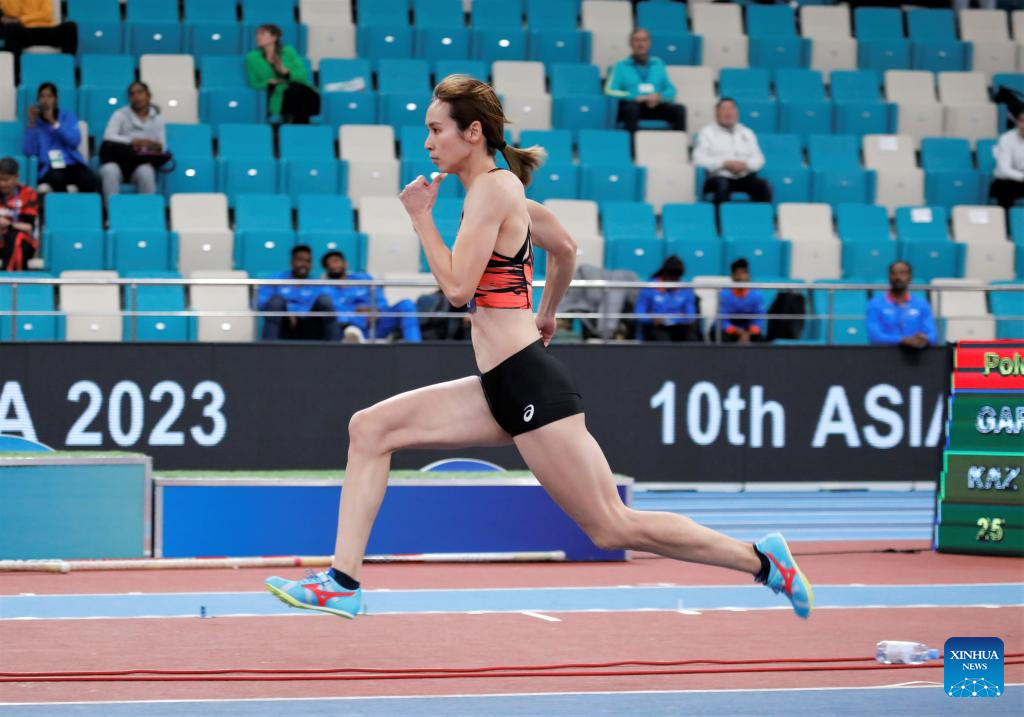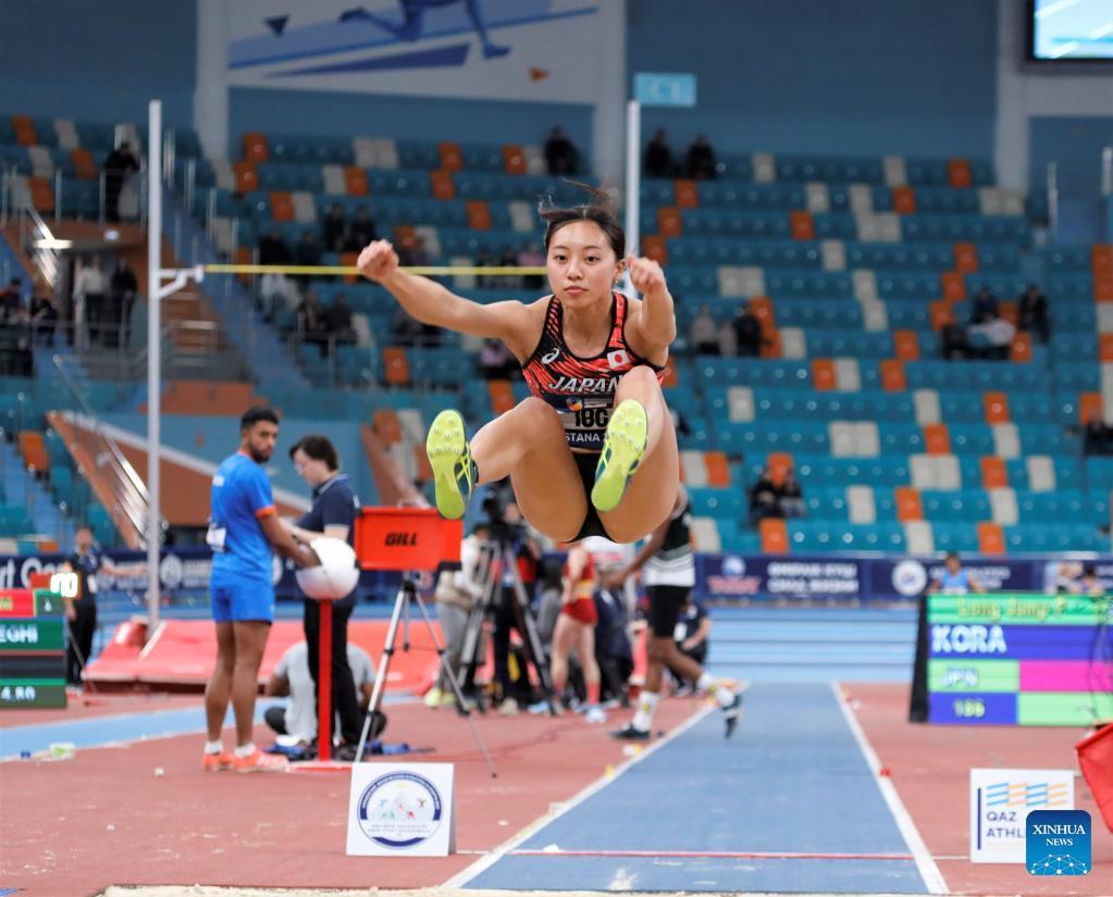 Kora Ayaka of Japan competes during the women's long jump final at the 10th Asian Indoor Athletics Championships in Astana, Kazakhstan, Feb. 12, 2023. (Photo by Kalizhan Ospanov/Xinhua)
