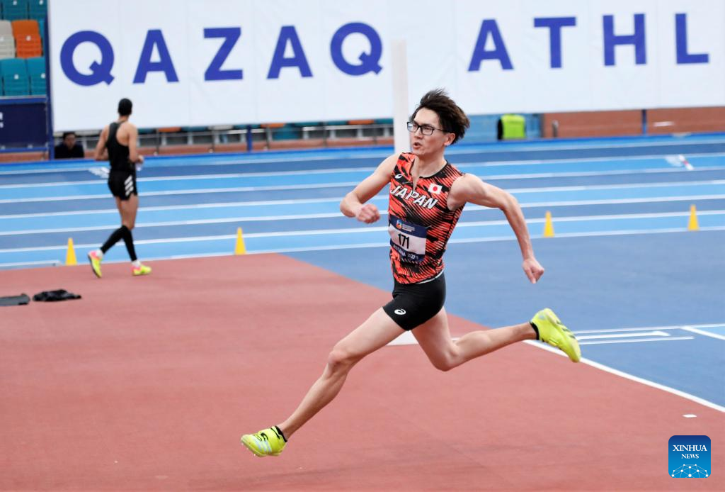 Sato Keita of Japan competes during the men's 3000m final at the 10th Asian Indoor Athletics Championships in Astana, Kazakhstan, Feb. 12, 2023. (Photo by Kalizhan Ospanov/Xinhua)