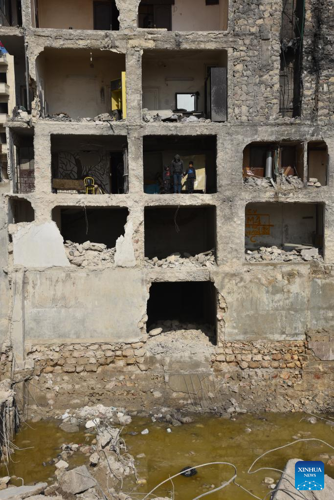 ALEPPO, Syria, Feb. 14 (Xinhua) -- Piles of earthquake debris gave Ali Abdul-Rahman, a survivor in northern Syria, a harsh flashback to the near-death second when he escaped a crumbling wall at home, and how the wall shared by two buildings kept friends and neighbors part.