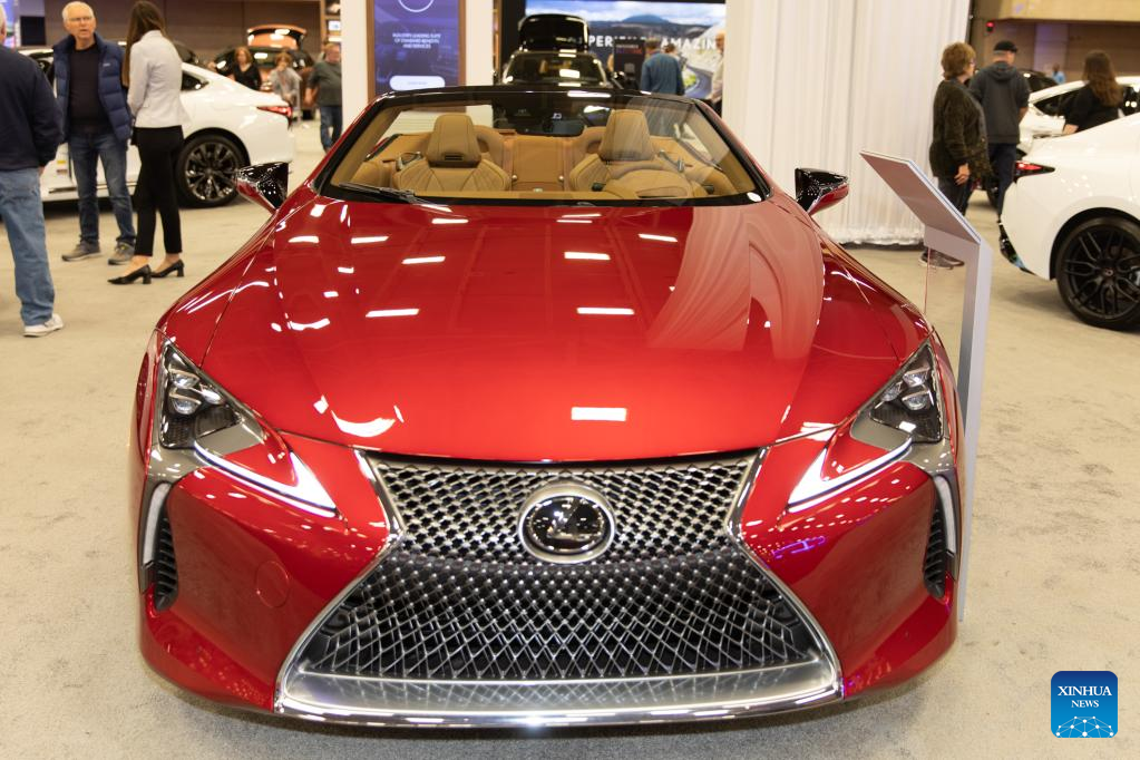 A 2023 Lexus RC Convertible is displayed at the North Texas Auto Show in Dallas, Texas, the United States, on Feb.16, 2023. The four-day North Texas Auto Show kicked off in Dallas on Thursday. (Photo by Dan Tian/Xinhua)