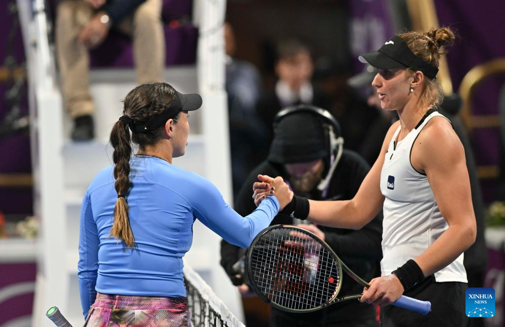 Jessica Pegula (L) of the United States shakes hands with Beatriz Haddad Maia of Brazil after their singles quarterfinal match at WTA500 Qatar Open 2023 in Doha, Qatar, Feb. 16, 2023. (Photo by Nikku/Xinhua)