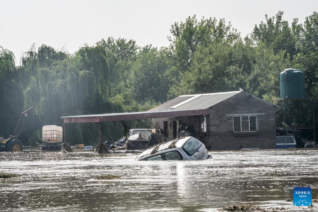 Vehicles are submerged in water in Lochvaal, South Africa, Feb. 19, 2023. The Vaal dam exceeded its maximum capacity due to heavy rainfall and caused floods in the Vaal River. (Photo by Shiraaz Mohamed/Xinhua)